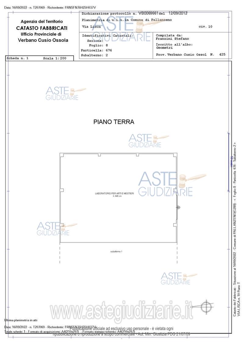Vendita all'asta Senza incanto, con gara telematica asincrona - LOTTO 4: Laboratorio. Prezzo base € 39.000,00 (offerta minima € 29.250,00). Data inizio operazioni di vendita: 19/12/2025 ore 10:00. Giudice Dott. Caterina Sinico. Custode Giudiziario Aste Giudiziarie Inlinea Spa - Email "ufficiocustodie@astegiudiziarie.it". Rif. Tribunale di Verbania - Esecuzione immobiliare post legge 80 n. 51/2022