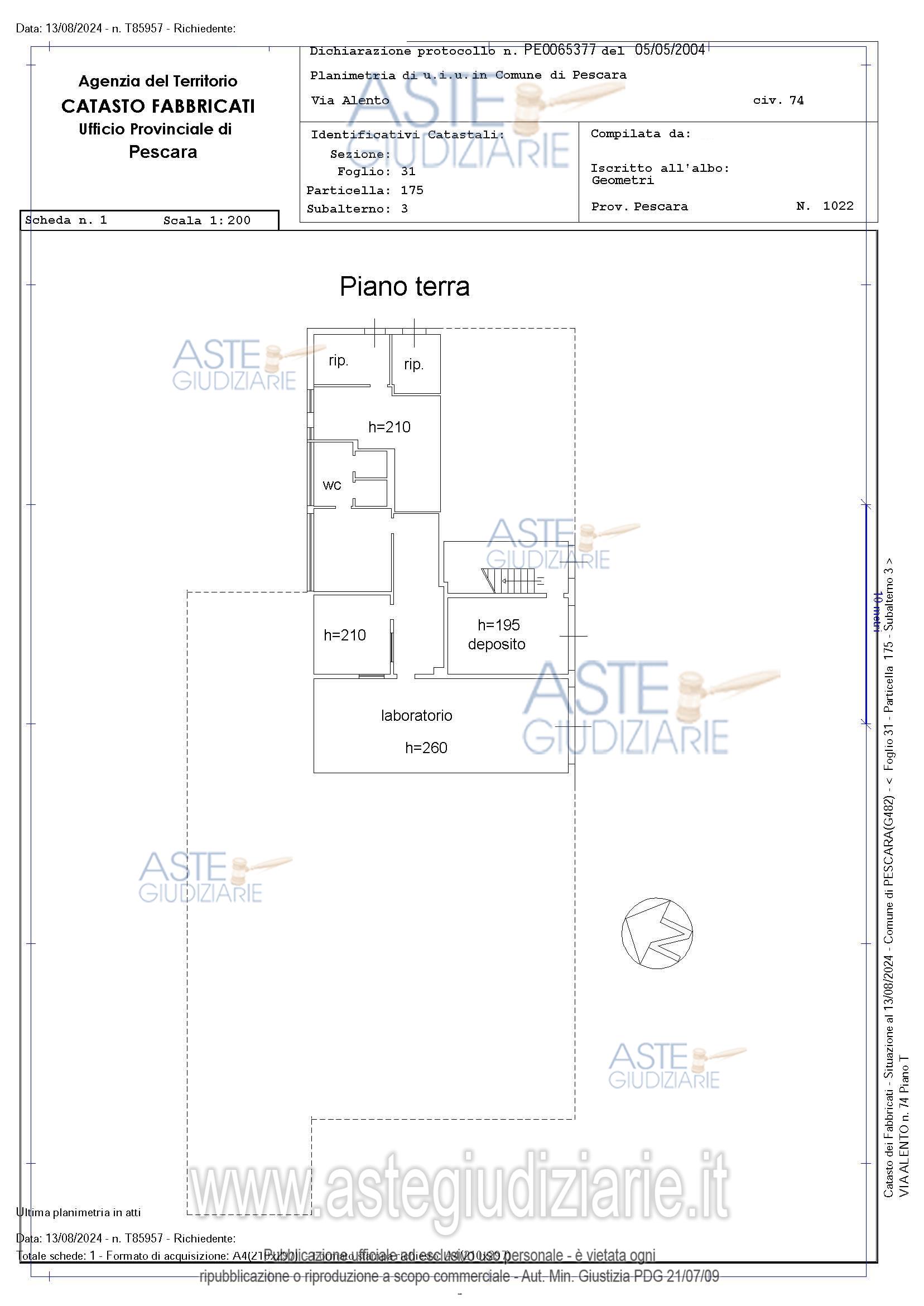 Vendita all'asta Senza incanto, con gara telematica asincrona - LOTTO 1:  Piena e perfetta proprietà del laboratorio per arti e mestieri, posto al piano terra di un maggior fabbricato, costituito da una porzione di un locale artigianale, unita  ad altra unità immobiliare adiacente, di proprietà di terzi, e rispetto alla quale non esiste una divisione fisica. L’unità si compone altresì di una parte soppalcata, di piccoli locali accessori destinati ad ufficio e servizi, di locali tecnologici e un locale sgombero/autorimessa dotati di accesso autonomo. Prezzo base € 54.301,50 (offerta minima € 40.726,13). Data inizio operazioni di vendita: 06/11/2025 ore 12:00. Giudice Dott. Federica Colantonio. Curatore Dott. Stefano Sajeva.  Rif. Tribunale di Pescara - Liquidazione giudiziale(cci) n. 36/2024