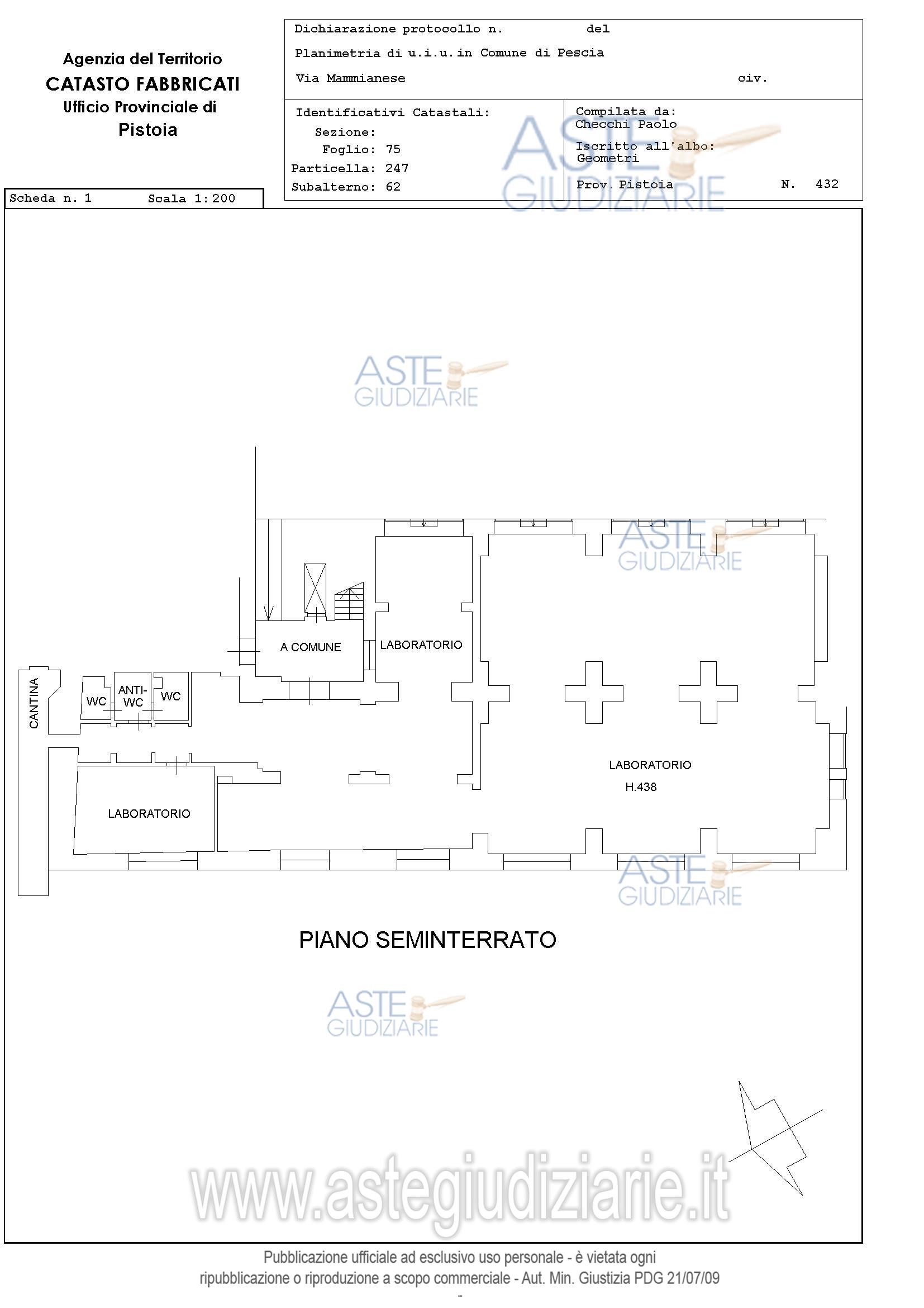 Vendita all'asta Senza incanto, con gara telematica asincrona - LOTTO 5: Diritti di piena proprietà 1/1 sopra porzione di complesso immobiliare ad uso residenziale e direzionale e, più precisamente unità immobiliare destinata a laboratorio posta al Piano Seminterrato attualmente da completare e da rifinire contraddistinta con l'interno N 1A. E' compresa nella presente vendita la corrispondente quota di comproprietà indivisa ed indivisibile sulle parti dell'edificio che per legge, consuetudine o destinazione sono da considerarsi comuni. Prezzo base € 15.500,00 (offerta minima € 11.625,00). Data inizio operazioni di vendita: 12/12/2025 ore 15:00. Professionista delegato alla vendita Avv. Luca Lucchesi - Email "avv.lucalucchesi@gmail.com"; Tel. 057326631. Custode Giudiziario Isveg - Email "prenota.pt@isveg.it"; Tel. 05733571532. Rif. Tribunale di Pistoia - Esecuzione immobiliare post legge 80 n. 127/2018