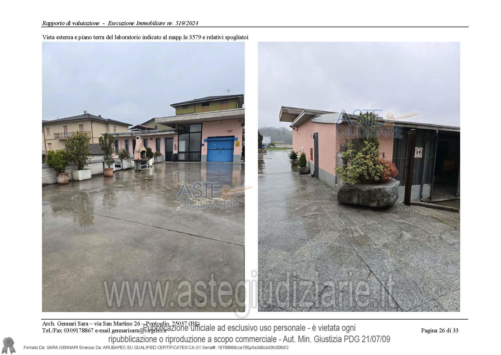 Vendita all'asta Senza incanto, con gara telematica asincrona - LOTTO 1: Laboratorio con annessi spazi destinati a depositi e uffici che si sviluppa su quattro piani e area urbana. Prezzo base € 697.331,25 (offerta minima € 522.998,44). Data inizio operazioni di vendita: 21/04/2026 ore 11:30. Giudice Dellesecuzione Giudice. Professionista delegato alla vendita Dott. Goffredo Barbi - Email "procedure@smartufficio.it". Custode Giudiziario Dott. Goffredo Barbi - Email "info@astecommissionarie.it". Rif. Tribunale di Brescia - Espropriazione immobiliare (cartabia) n. 519/2024