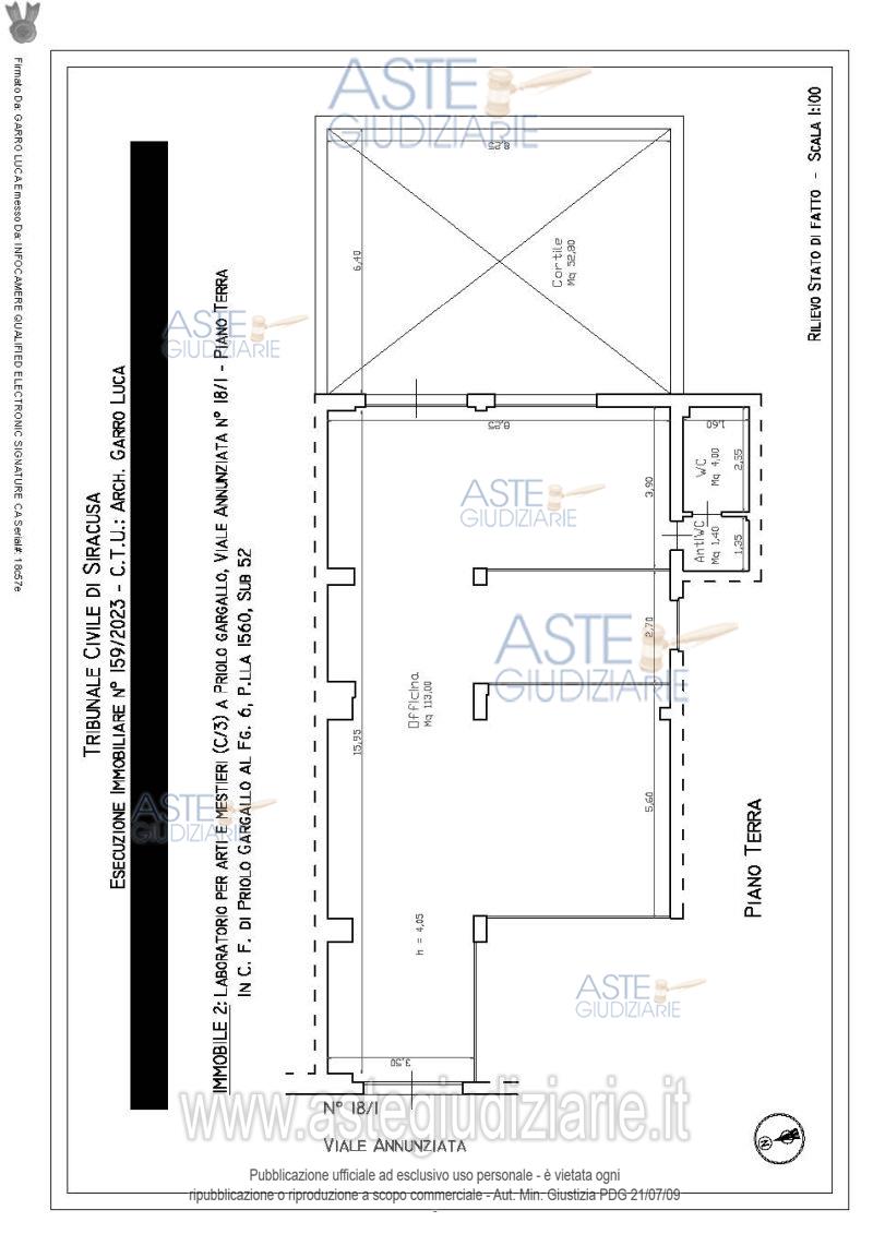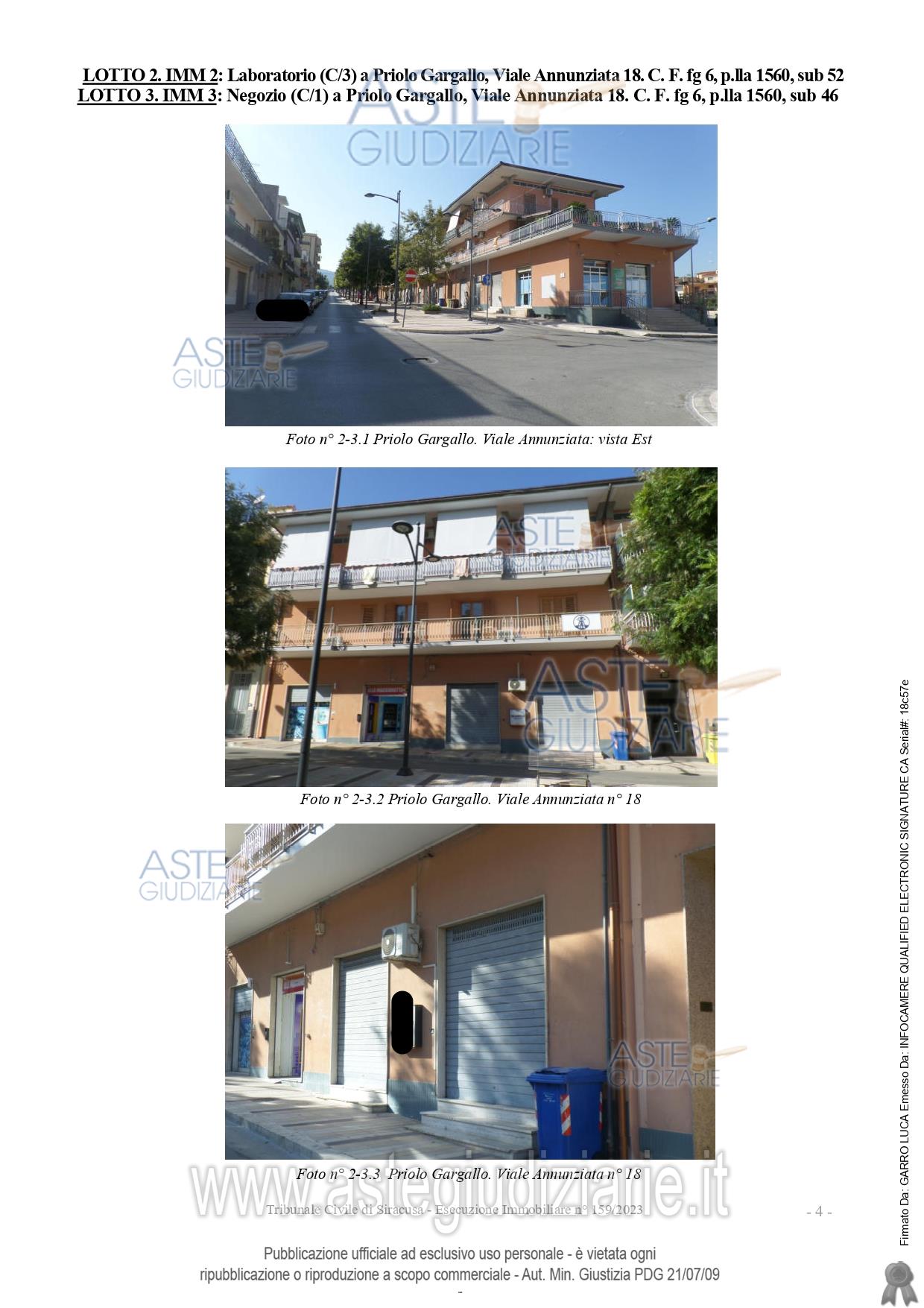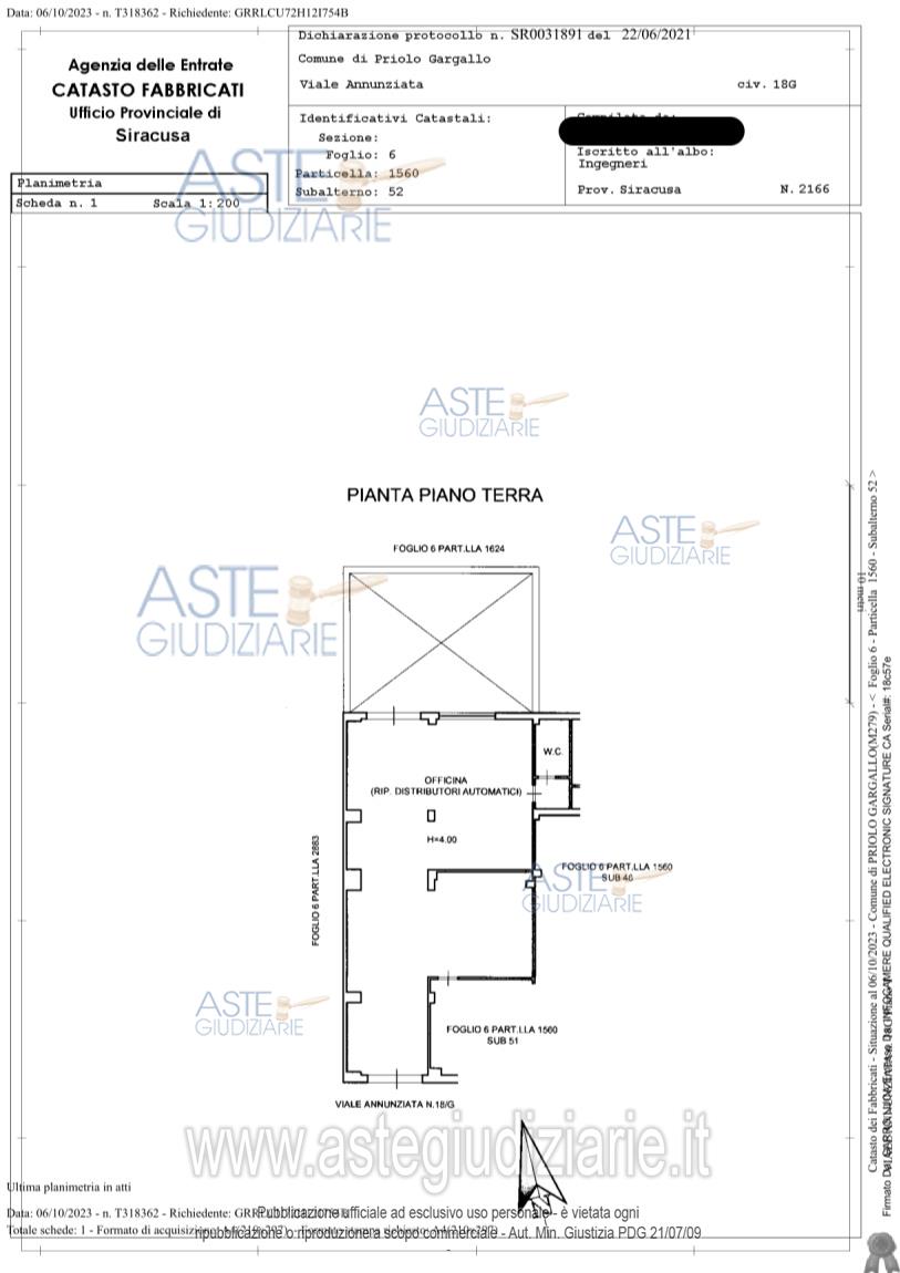 Vendita all'asta Senza incanto, con gara telematica sincrona mista - LOTTO 2: Intera proprietà di officina in Priolo Gargallo (SR), Viale Annunziata n. 18/I, p. T, in N.C.E.U. al foglio 6, p.lla 1560, sub. 52, cat. C/3, mq. 122, superficie catastale totale mq. 140, rendita Euro 226,83. Prezzo base € 34.500,00 (offerta minima € 25.875,00). Data vendita 21/10/2025 ore 10:00. Giudice Dott. Concita Cultrera. Professionista delegato alla vendita Avv. Gabriele Galota - Email "galota.gabriele@gmail.com"; Tel. 09311562510. Custode Giudiziario Avv. Gabriele Galota - Email "galota.gabriele@gmail.com"; Tel. 09311562510. Rif. Tribunale di Siracusa - Esecuzione immobiliare post legge 80 n. 159/2023