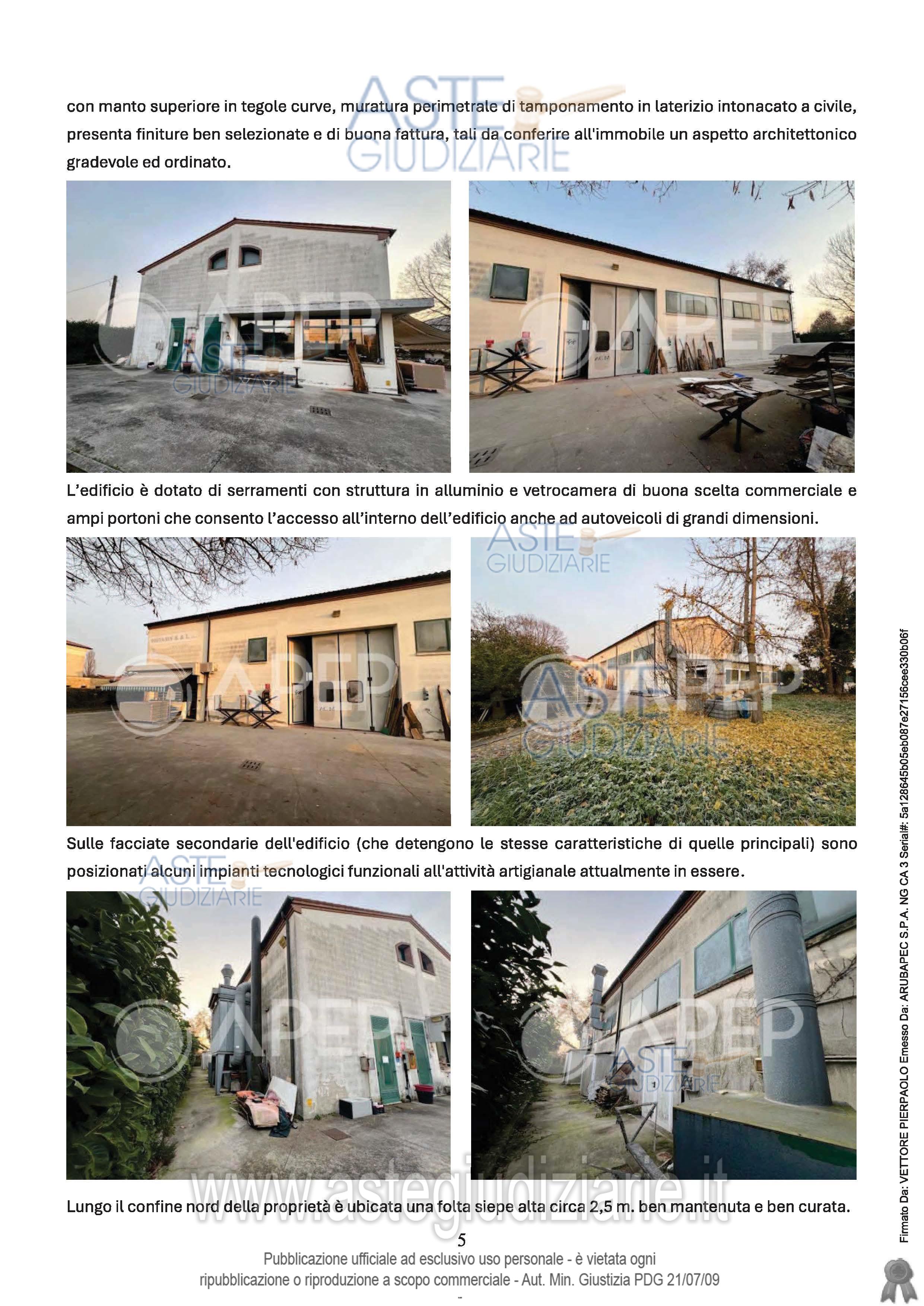 Vendita all'asta Senza incanto, con gara telematica sincrona - LOTTO UNICO: Lotto Unico - piena proprietà di fabbricato artigianale sito in Comune di Rubano (PD), via Roma n. 60, costituito da un capannone ad uso laboratorio di mq. 497 (altezza interna mt. 5,40) composto da zona laboratorio di mq. 295, zona servizi, comprendente spogliatoi, doccia, wc e ufficio, con l'area coperta e scoperta esclusiva di pertinenza di catastali mq. 1.740. Occupato temporaneamente giusta autorizzazione del GE in data 4/8/2025. Prezzo base € 227.000,00 (offerta minima € 170.250,00). Data vendita 13/11/2025 ore 15:00. Giudice Amenduni. Professionista delegato alla vendita Not. Alessandro Nazari - Email "aste@apepnotai.it"; Tel. 049651228. Custode Giudiziario Apep - Email "visita@apepnotai.it"; Tel. 049651228. Rif. Tribunale di Padova - Espropriazione immobiliare (cartabia) n. 245/2024