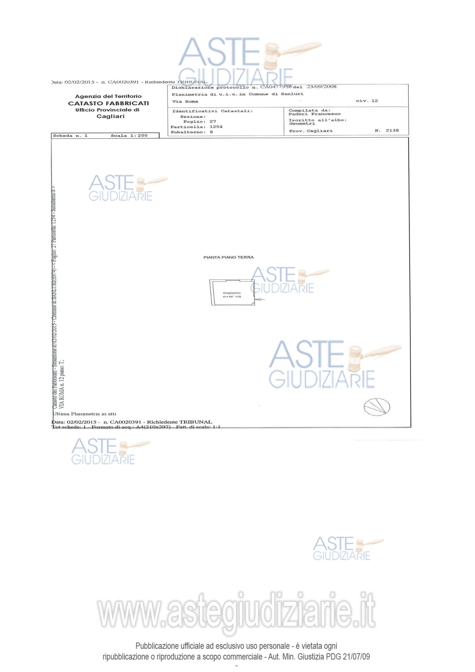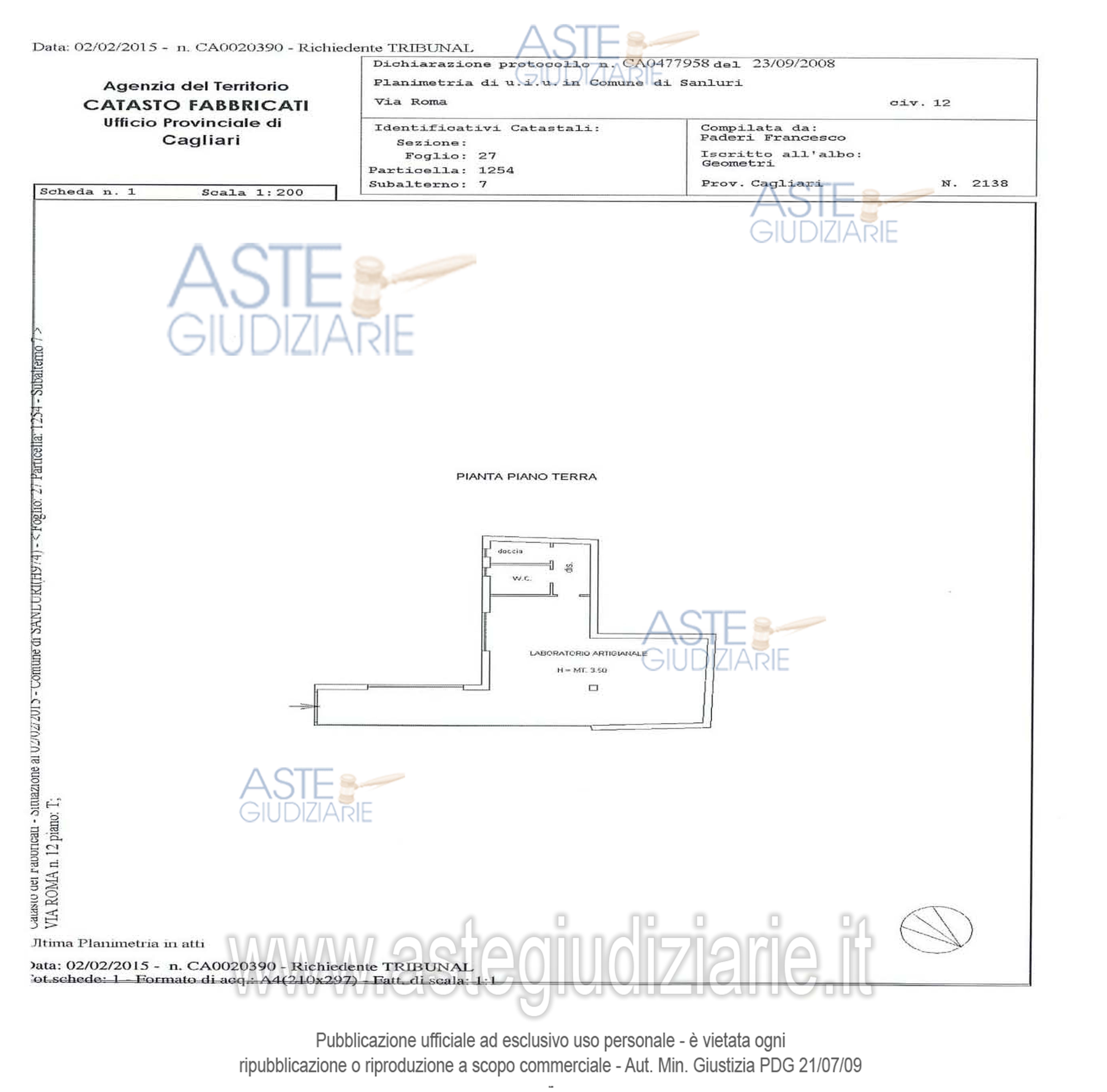 Vendita all'asta Senza incanto - LOTTO 3: Laboratorio artigianale di 80 mq. Prezzo base € 20.582,00 (offerta minima € 15.436,00). Data vendita 28/11/2025 ore 16:00. Professionista delegato alla vendita Dott. Pierpaolo Argiolas - Email "dott.pierpaoloargiolas@gmail.com"; Tel. 070492944. Custode Giudiziario Lino Icilio Felice Fresi - Email "ivg.cagliari@tiscali.it"; Tel. 0702299036. Rif. Tribunale di Cagliari - Esecuzione immobiliari n. 297/2003