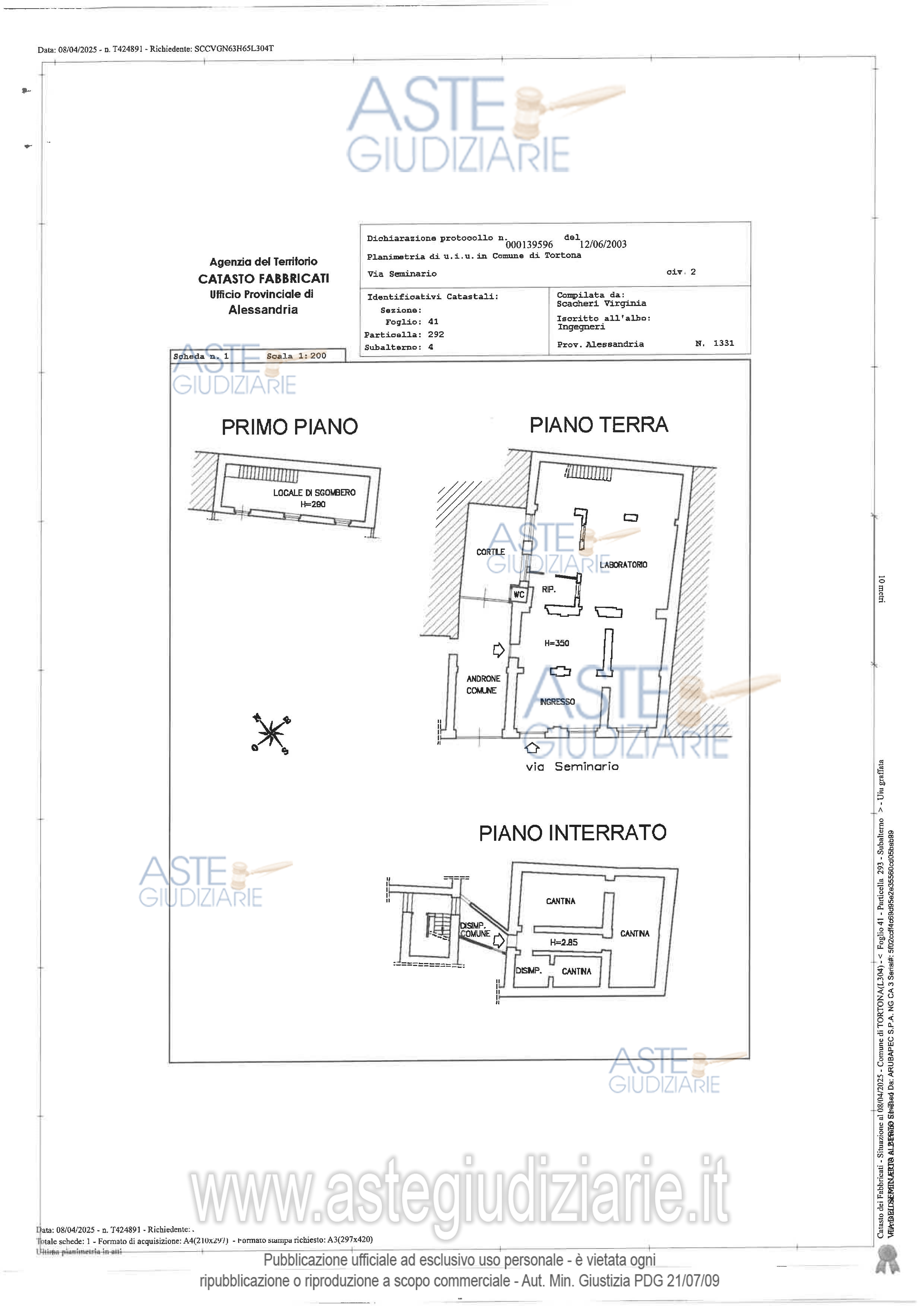 Vendita all'asta Senza incanto - LOTTO UNICO: Il bene comprende locali già adibiti a laboratorio artigianale (tipografia) posti al piano terra, con annesso cortiletto retrostante l’androne d’ingresso; un locale di sgombero posto al piano primo, accessibile mediante scala interna; nonché tre vani cantina, con corridoio e disimpegno, ubicati al piano interrato e sottostanti a parte del laboratorio. Prezzo base € 131.000,00 (offerta minima € 98.250,00). Data vendita 27/03/2026 ore 10:00. Professionista delegato alla vendita Avv. Andrea Gatti - Email "studiolegale@studiogatti.com"; Tel. 013155777. Custode Giudiziario Avv. Andrea Gatti - Email "studiolegale@studiogatti.com"; Tel. 013155777. Rif. Tribunale di Alessandria - Espropriazione immobiliare (cartabia) n. 33/2025
