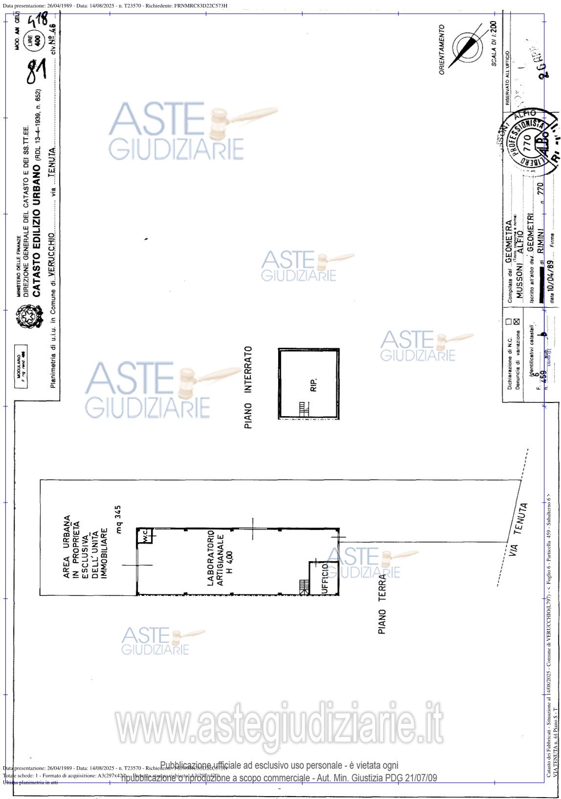 Custode Giudiziario: Avv. Massimo Battistini - Email "avvocatobattistini@gmail.com"; Cell. 340/7626575.
