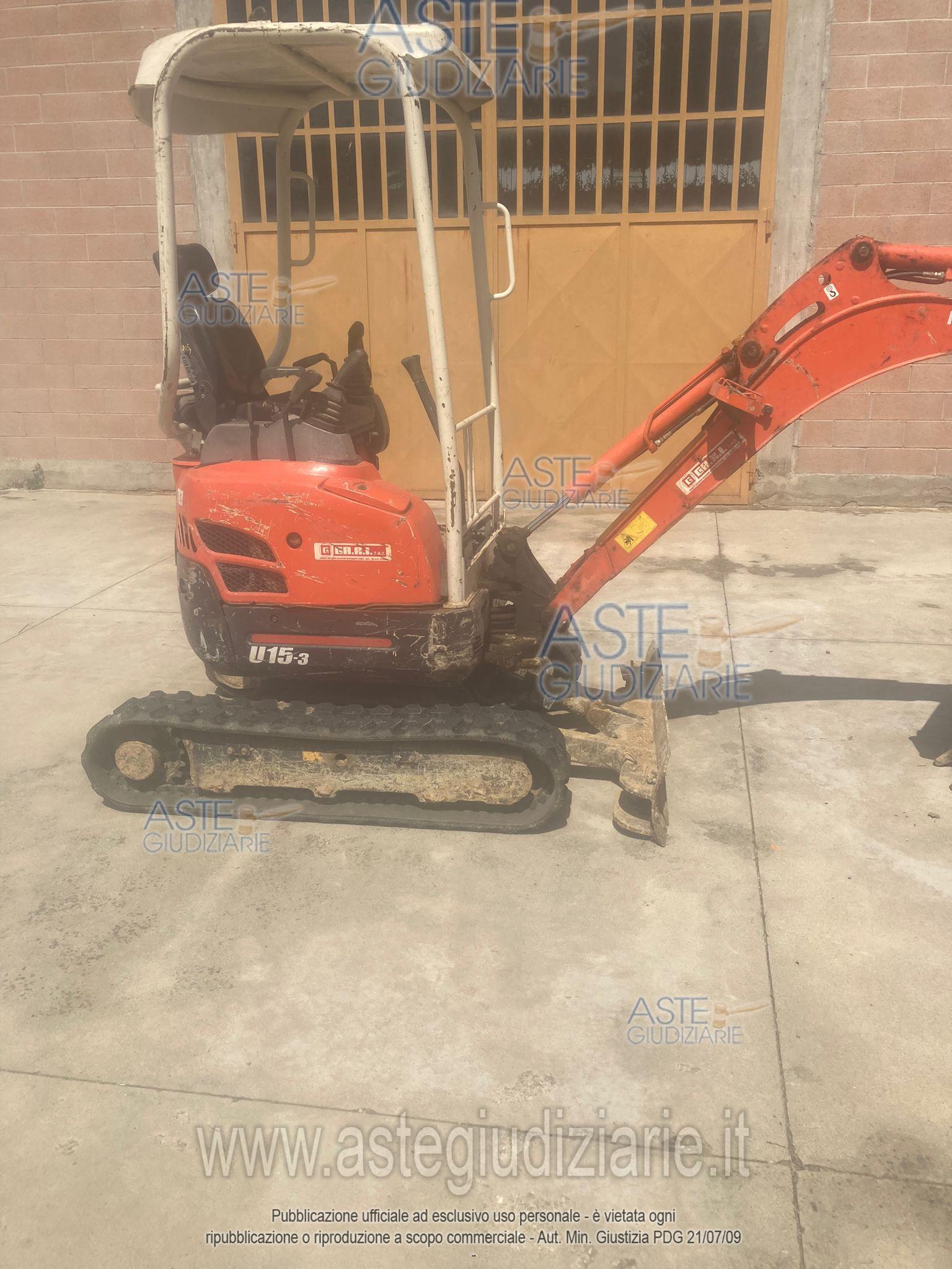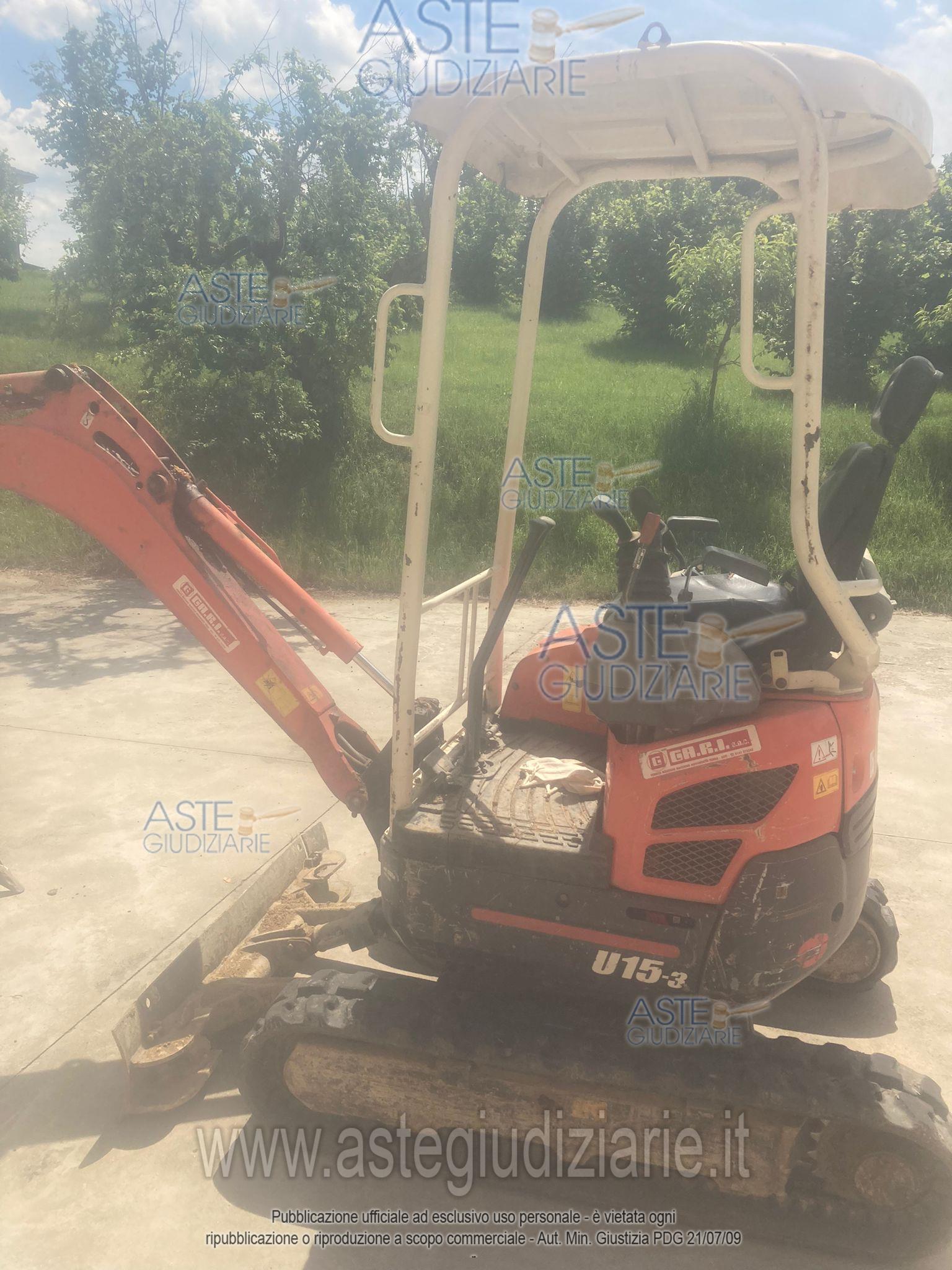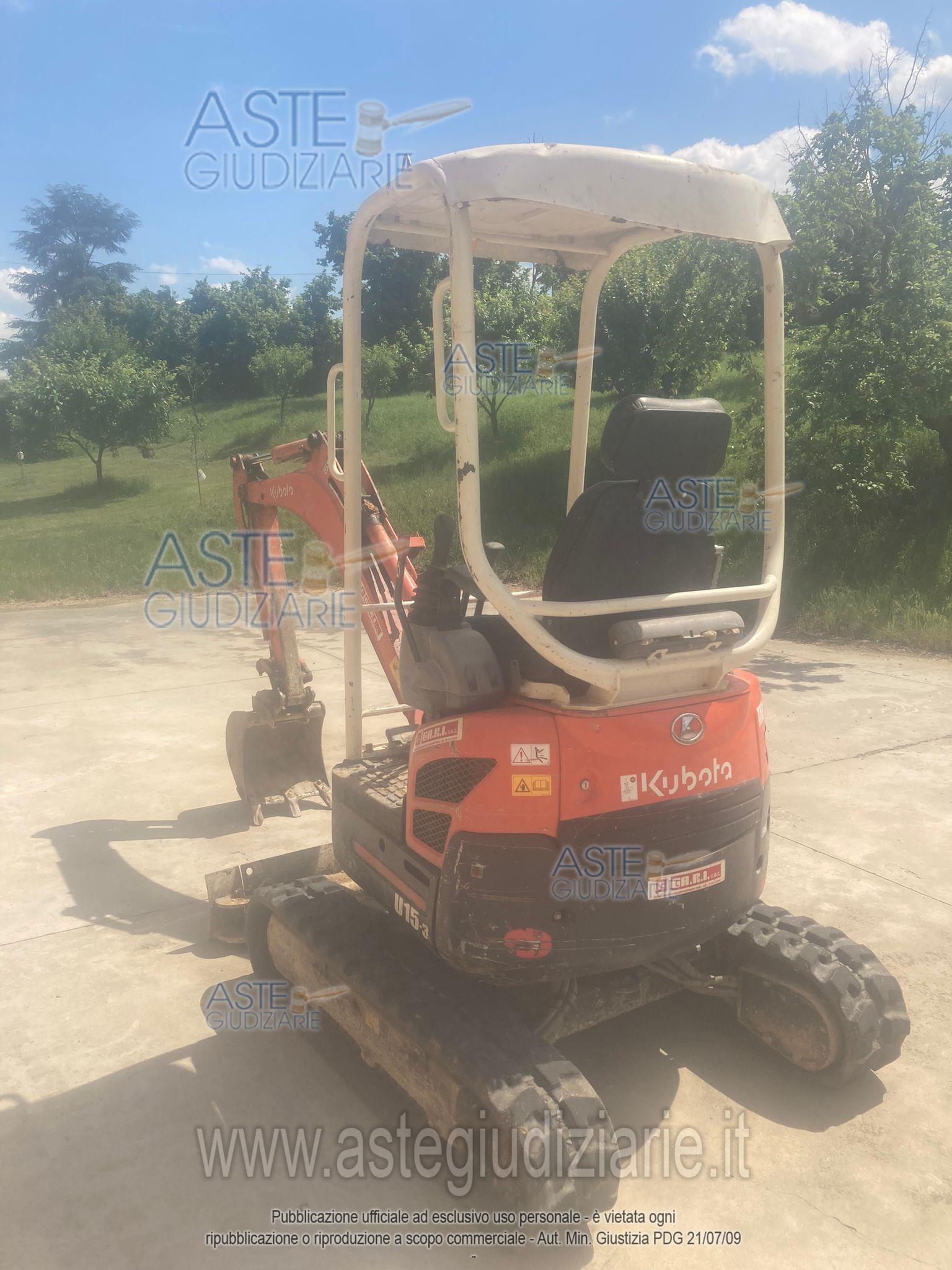Vendita in attesa dell'emissione del nuovo bando d'asta. LOTTO 5: In avviso Lotto 2d - Kubota miniescavatore U15-3. Ultimo prezzo base € 9.849,60. Giudice Andrea Carena. Curatore Avv. Sabrina Sacconiro. Rif. Tribunale di Asti - Fallimentare (nuovo rito) n. 18/2022