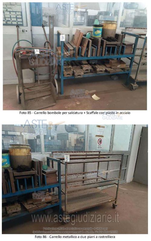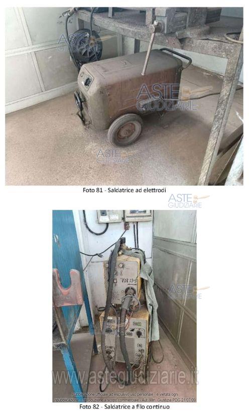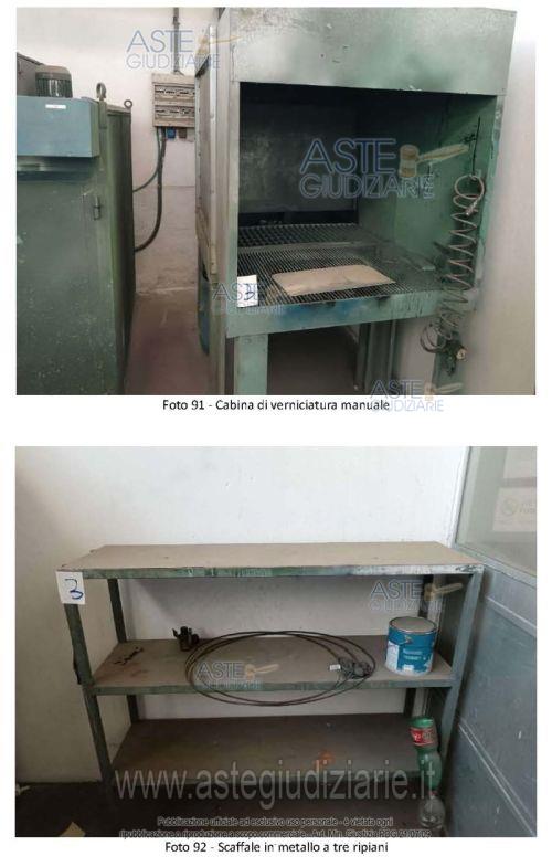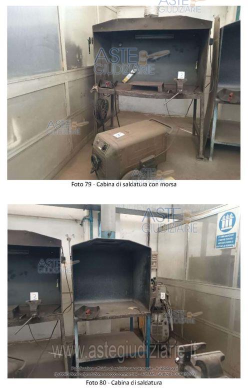 Vendita in attesa dell'emissione del nuovo bando d'asta. LOTTO 3: •Impianto aspirazione fumi ditta FAR completo aspiratore, cabina di filtraggio e canali;•Cabina di saldatura cin morsa;•Cabina di saldatura;•Saldatrice ad elettrodi con maschera;•Saldatrice a filo continuo marca CEA tipo maxi 500 matricola FG161026;•Banco lavoro a due ripiani con struttura in metallo o completo di morsa, paratia frontale e piastra mobile in acciaio;•Carrello con struttura in metallo e piano in legno;•Carrello con struttura in metallo a due piani;•Carrello porta bombole per saldatura;•Scaffale in metallo a due ripiani con piaste in acciaio di diverse misure forme e spessori;•Carrello metallico a due piani a rastrelliera;•Fornetto elettrico a camera;•Cabina di polimerizzazione e asciugatura componenti verniciati;•Bidone aspiratutto marca RIBO modello CS10-479;•Scaffale metallico a 4 ripiani;•Cabina di verniciatura manuale;•Scaffale in metallo a tre ripiani. Ultimo prezzo base € 1.335,75 (offerta minima € 1.001,81). Giudice Dott. Maria Azzurra Guerra. Curatore Avv. Giuseppe Canfora - Email "avv.canforagiuseppe@gmail.com". Rif. Tribunale di Trani - Liquidazione giudiziale(cci) n. 40/2025