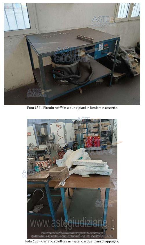 Vendita in attesa dell'emissione del nuovo bando d'asta. LOTTO 8: •Cassettiera industriale portautensili a 6 cassetti contenete minuteria ed attrezzature varie;•Tavolo da lavoro con struttura in metallo e due piani in legno, con doppio cassetto, morsa, piano di acciaio e attrezzi e accessori vari;•Centro di lavoro verticale Marca OMS modello HSC 1100, matricola 211/10, anno di fabbricazione 1998;•Centro di lavoro verticale Marca OMS modello HSC 1100, matricola 211/22, anno di fabbricazione 2000;•Piccolo scaffale a due ripiani in lamiera e cassetto contenente aspirapolvere /liquidi ditta FASA;•Carrello con struttura in metallo ea due piani di appoggio;•Elettromandrino marca INDRAMAT modello 2AD101D-B050A2- BD03-C2N2 matricola 2AD101-01493 anno di costruzione 2024;•Elettromandrino marca OMLAT matricola 072639 anno di costruzione 2008. Ultimo prezzo base € 30.652,50 (offerta minima € 22.989,37). Giudice Dott. Maria Azzurra Guerra. Curatore Avv. Giuseppe Canfora - Email "avv.canforagiuseppe@gmail.com". Rif. Tribunale di Trani - Liquidazione giudiziale(cci) n. 40/2025