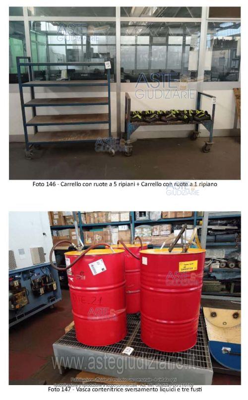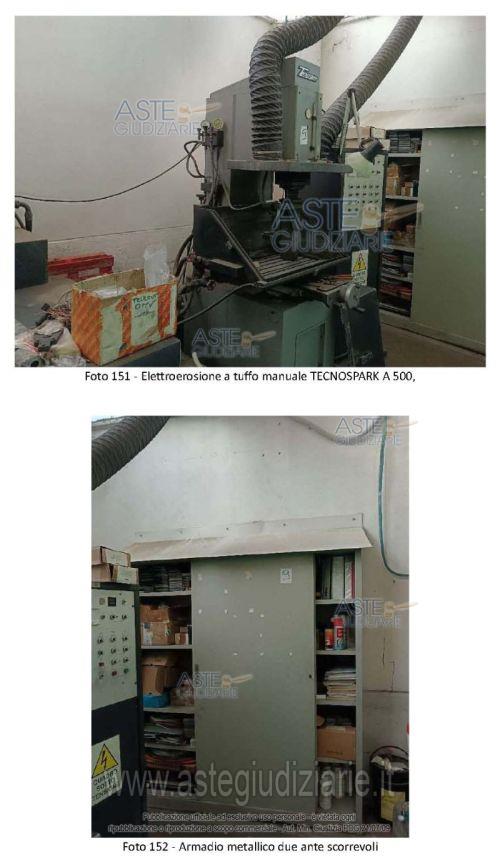 Vendita in attesa dell'emissione del nuovo bando d'asta. LOTTO 9: •Tavolo da lavoro con struttura in metallo e due piani in legno, con doppio cassetto, morsa, piano di acciaio e attrezzi e accessori vari;•Centro di lavoro marca FAMUP modello MMV 160 Matricola 16001601 anno di fabbricazione 2001;•Armadio in metallo a doppia anta scorrevole contenete accessori, attrezzature ed utensili vari;•Armadio in metallo a doppia anta scorrevole contenete accessori, e materiale di vario genere;•Vasca contenitrice sversamento liquidi e cisternetta;•N.2 Vasche contenitrici sversamento liquidi una con cisternetta una con serbatoio in materiale plastico colore nero;•Bidone aspiratutto con aspiratore RIBO modello VS10-479 matricola 39;•Carrello con ruote a 5 ripiani;•Carrello con ruote a 1 ripiano;•Vasca contenitrice sversamento liquidi e tre fusti dotati di pompa manuale per travaso fusti;•Doppio scaffale in metallo a 6 ripiani contenente componenti e attrezzature macchinari obsoleti o non funzionanti;•Scala in metallo fissa a 13 gradini compreso piano di appoggio;•Trapano a colonna marca Famup, tipo TCO PU N, matricola 1861, anno di fabbricazione 1985;•Elettroerosione a tuffo manuale TECNOSPARK A 500, modello 570, matricola 0489920, anno di fabbricazione 1989;•Armadio metallico due ante scorrevoli dim 300x55x180 contenete accessori e minuteria varia. Ultimo prezzo base € 28.085,00 (offerta minima € 21.063,75). Giudice Dott. Maria Azzurra Guerra. Curatore Avv. Giuseppe Canfora - Email "avv.canforagiuseppe@gmail.com". Rif. Tribunale di Trani - Liquidazione giudiziale(cci) n. 40/2025