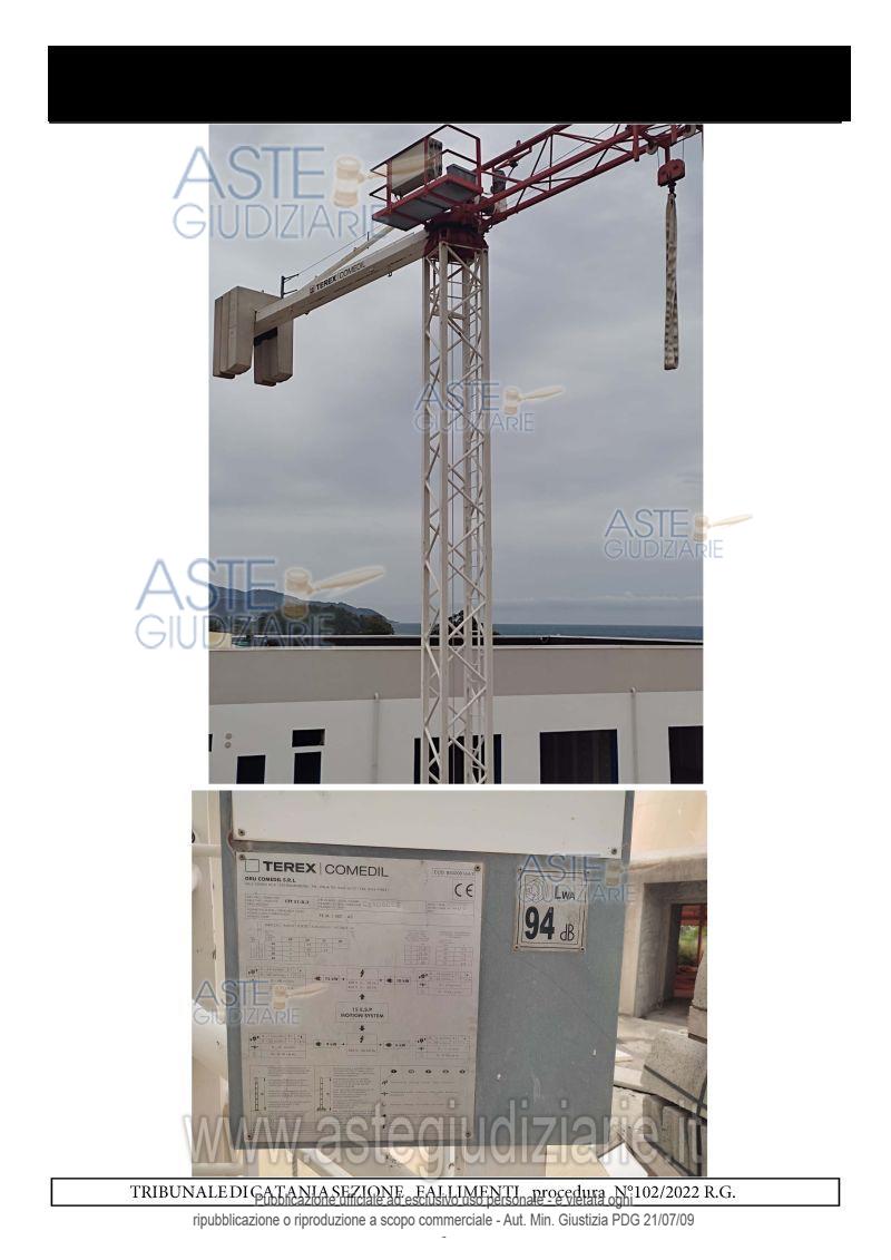 Vendita all'asta Con incanto, con gara telematica asincrona - LOTTO 17: Gru a Torre già smontata e munita di telecomando. Prezzo base € 2.000,00 (offerta minima € 2.000,00). Data vendita: dal 18/02/2026 ore 11:00 al 25/02/2026 ore 11:00. Giudice Dott. Sebastiano Cassaniti. Curatore Avv. Donatella Giustolisi - Email "donatellagiustolisi@gmail.com"; Tel. 095535055. Rif. Tribunale di Catania - Fallimentare (nuovo rito) n. 102/2022