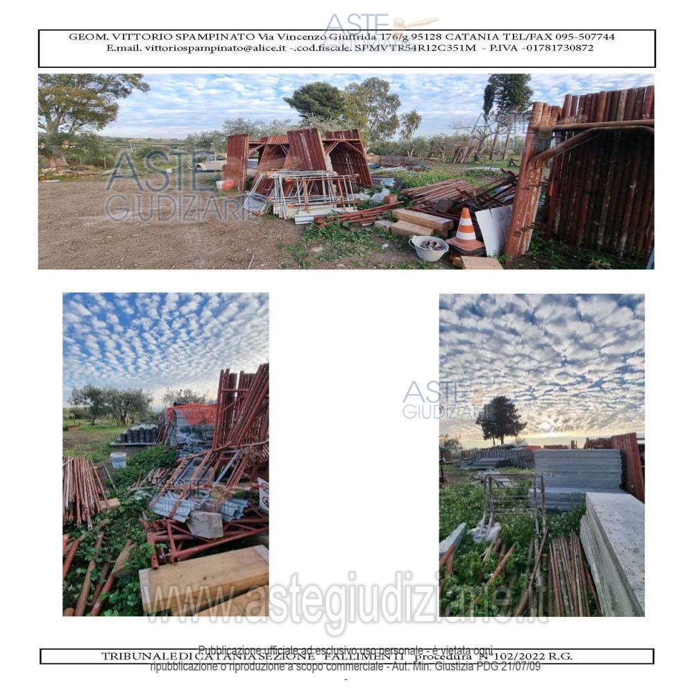 Vendita all'asta Con incanto, con gara telematica asincrona - LOTTO 22: Ponteggio (252 elementi + 210 ferma-piedi + 420 pedane + 42 cancelletti + 840 correnti + 420 diagonali + 84 vitoni + 8 pedane con botola + 9 scalette in ferro). Prezzo base € 5.500,00 (offerta minima € 5.500,00). Data vendita: dal 18/02/2026 ore 11:00 al 25/02/2026 ore 11:00. Giudice Dott. Sebastiano Cassaniti. Curatore Avv. Donatella Giustolisi - Email "donatellagiustolisi@gmail.com"; Tel. 095535055. Rif. Tribunale di Catania - Fallimentare (nuovo rito) n. 102/2022