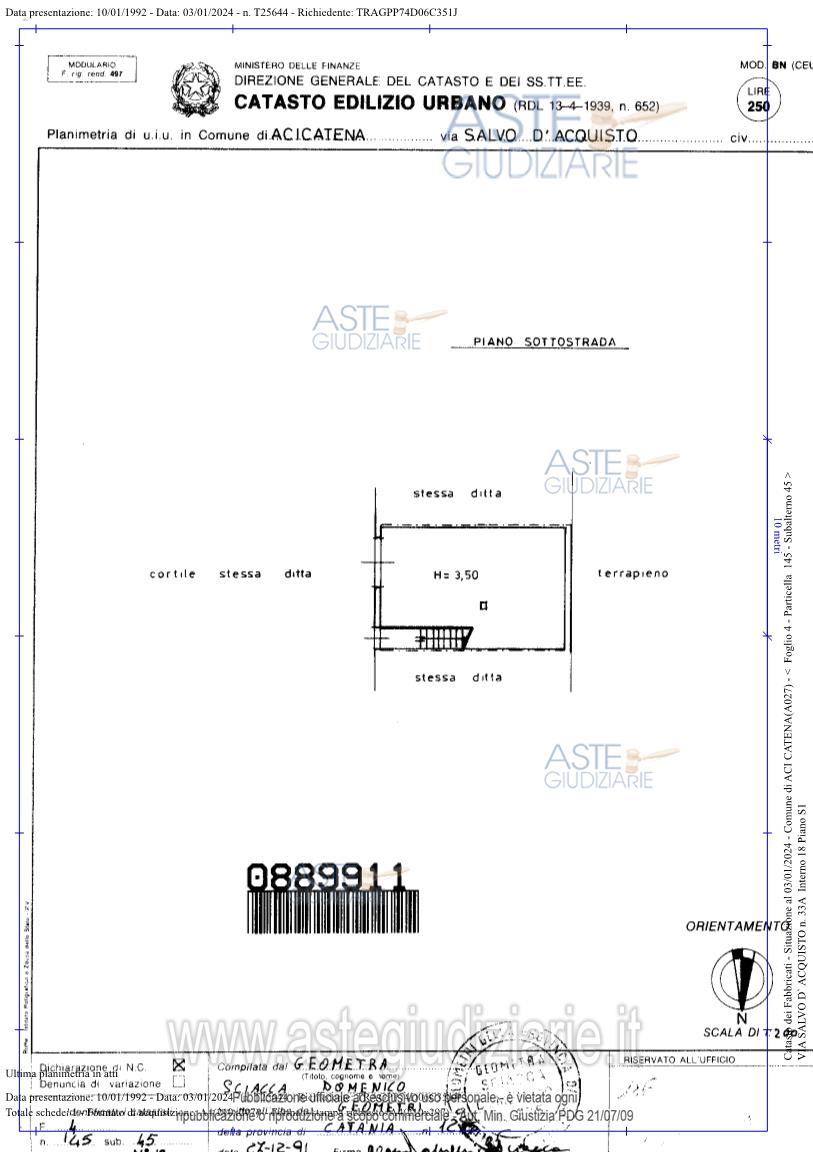 Vendita all'asta Senza incanto, con gara telematica sincrona mista - LOTTO UNICO: Autorimessa sita in Aci Catena, Via Salvo D’Acquisto n. 33/A, piano interrato,int. 18, avente consistenza pari a 57 mq e censita al Catasto al Foglio 4, part.145, sub. 45, cat. C/2, cl. 8, Consistenza 57 mq, R.C. € 150,13. Prezzo base € 33.000,00 (offerta minima € 24.750,00). Data vendita 27/05/2026 ore 17:00. Professionista delegato alla vendita Avv. Gaetano Bianca - Email "avvocatogaetanobianca@gmail.com". Custode Giudiziario Avv. Gaetano Bianca - Email "avvocatogaetanobianca@gmail.com". Rif. Tribunale di Catania - Esecuzione immobiliare post legge 80 n. 374/2022