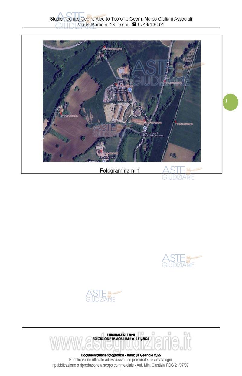 Vendita all'asta Senza incanto, con gara telematica asincrona - LOTTO 0: Piena proprietà per la quota di 1/1 su Locali di deposito con corte di pertinenza siti nel Comune di Acquasparta (TR), in Strada della Casella snc (ex Loc. Furapane), in una zona agricola limitrofa alla superstrada E45, al piano terra, della superficie commerciale di mq 959,80. Si rimanda alla perizia di stima redatta dal Geom. Marco Giuliani per una puntuale descrizione dell’immobile. Prezzo base € 55.968,75 (offerta minima € 41.976,56). Data inizio operazioni di vendita: 03/06/2026 ore 10:30. Giudice Francesco Angelini. Professionista delegato alla vendita Avv. Alessandra Montagna - Email "montagna.alex@gmail.com"; Tel. 3294314696. Custode Giudiziario Avv. Alessandra Montagna - Email "montagna.alex@gmail.com"; Tel. 3294314696. Rif. Tribunale di Terni - Espropriazione immobiliare (cartabia) n. 111/2024
