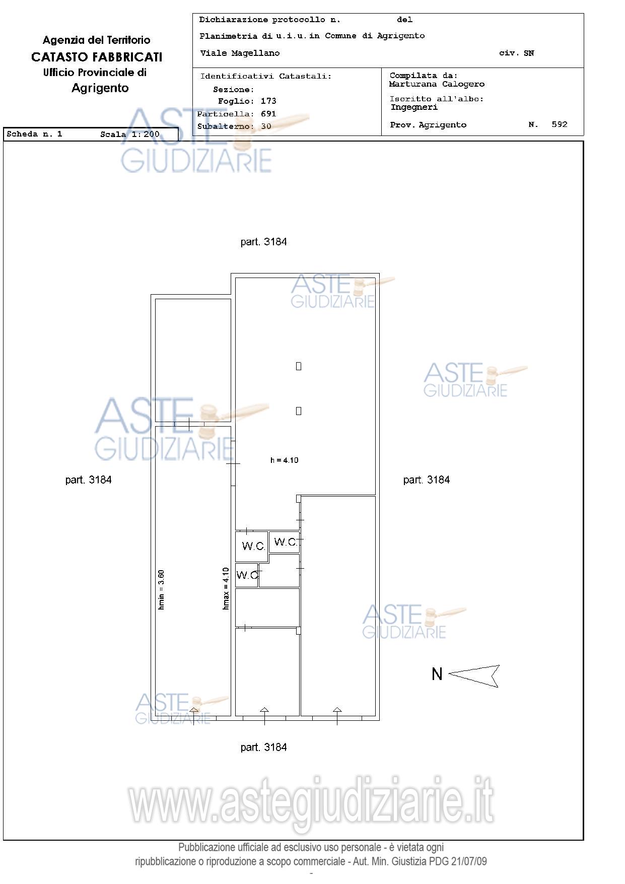 Vendita all'asta Senza incanto, con gara telematica sincrona mista - LOTTO 1: Unità immobiliare sita in Agrigento (AG) via Magellano n. 22, distinta al N.C.E.U. Foglio 173, Part. 1663, Sub 77 (cat. C/2) destinata a “Magazzini e locali di deposito”, posta al piano terra di un maggiore fabbricato condominiale. Prezzo base € 69.187,50 (offerta minima € 51.890,63). Data vendita 04/02/2026 ore 16:30. Professionista delegato alla vendita Avv. Carmen Augello - Email "carmen.augello@gmail.com"; Cell. 3385852370; Tel. 0922854658. Custode Giudiziario Avv. Carmen Augello - Email "carmen.augello@gmail.com"; Cell. 3385852370; Tel. 0922854658. Rif. Tribunale di Agrigento - Esecuzione immobiliare post legge 80 n. 11/2021