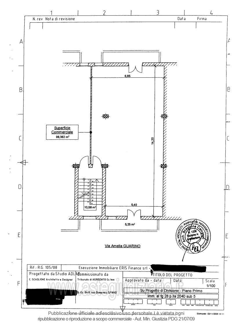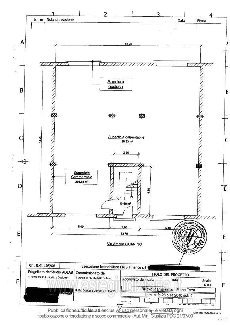 Vendita all'asta Senza incanto, con gara telematica sincrona mista - LOTTO 1: Piena proprietà per la quota di 1000/1000 di magazzino composto da un unico vano con un corpo centrale di collegamento con il livello superiore prospiciente sulle due vie pubbliche che delimitano l’isolato attraverso quattro accessi, posto al piano terra sviluppa una superficie lorda complessiva di circa mq 206,84. Prezzo base € 9.408,47 (offerta minima € 7.056,35). Data vendita 07/05/2026 ore 09:30. Giudice Domenica Spanò. Professionista delegato alla vendita Avv. Simone Landri - Email "avvsimonelandri@gmail.com"; Cell. 3387206014; Tel. 0922080119. Custode Giudiziario Avv. Simone Landri - Email "avvsimonelandri@gmail.com"; Cell. 3387206014; Tel. 0922080119. Rif. Tribunale di Agrigento - Esecuzione immobiliare post legge 80 n. 105/2008