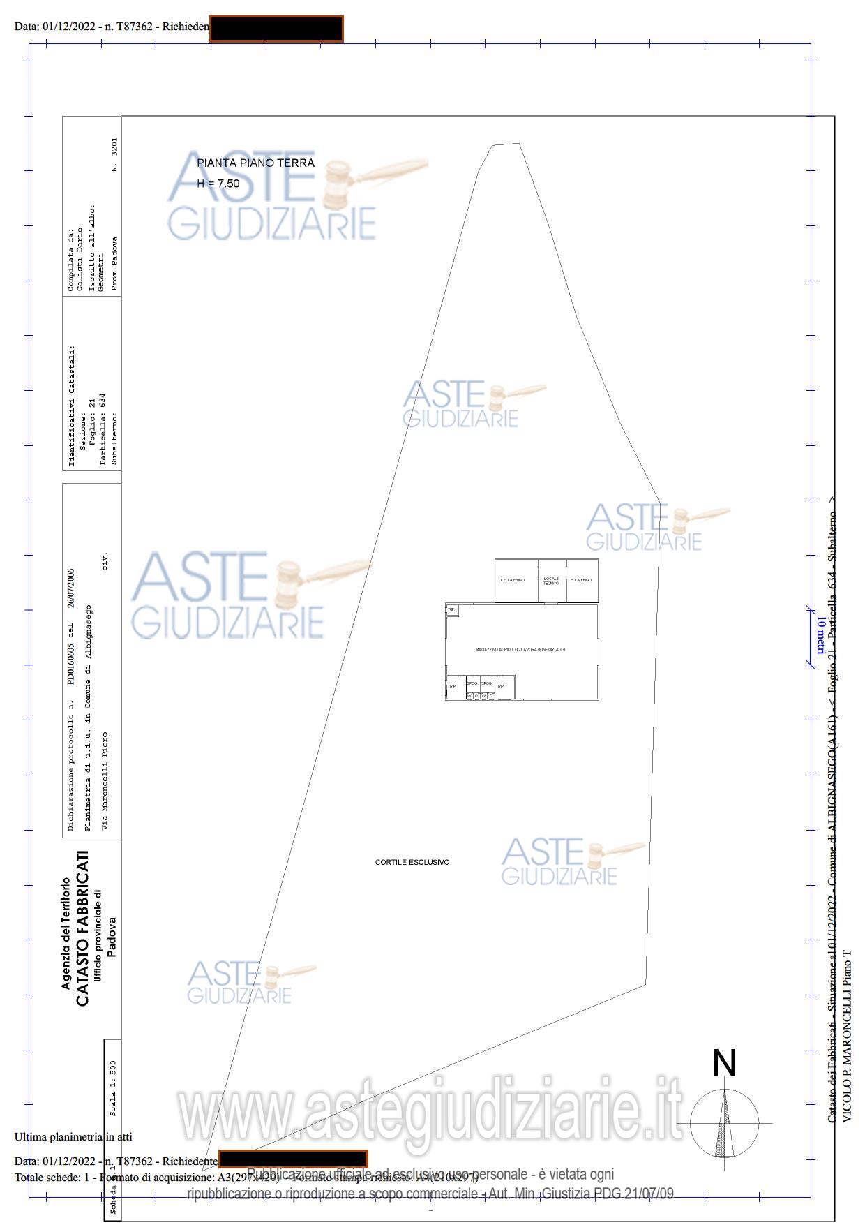 Vendita in attesa dell'emissione del nuovo bando d'asta. LOTTO 2: Lotto 2 - piena proprietà di complesso immobiliare a destinazione agricola, sito in Albignasego (PD), Vicolo P. Maroncelli n. 1 Ant composto da: due corpi di fabbrica, di cui uno non censito, costituito da due vani deposito ed un vano tecnico oltre ad uno spazio per lavaggio ortaggi; un terzo corpo contenente 5 celle frigorifero; una tettoia in acciaio; altri manufatti minori; il tutto su un'area coperta e scoperta di mq. 10.031 e così per una superficie commerciale di mq. 1.406. Occupato senza titolo. Ultimo prezzo base € 402.000,00 (offerta minima € 301.500,00). Giudice Rossi. Professionista delegato alla vendita Not. Cristina Cassano - Email "aste@apepnotai.it"; Tel. 049651228. Custode Giudiziario Ass. Prof. Apep - Email "visita@apepnotai.it"; Tel. 049651228. Rif. Tribunale di Padova - Esecuzione immobiliare post legge 80 n. 291/2022