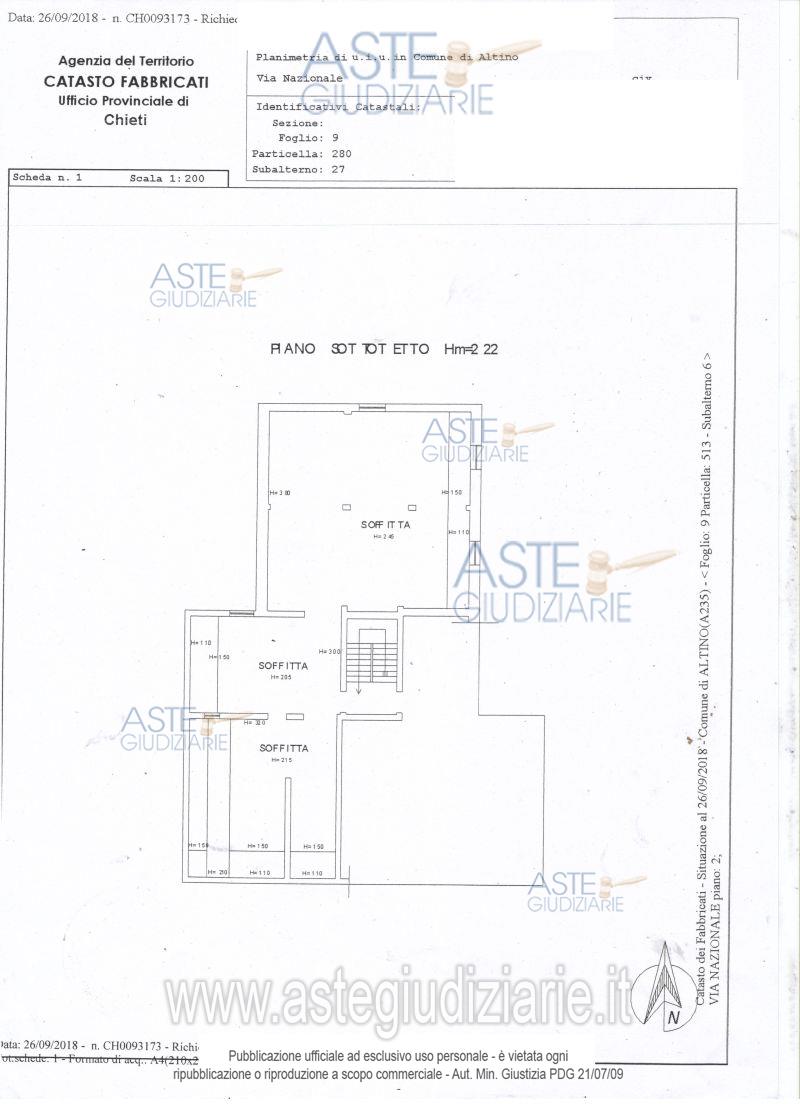 Vendita all'asta Senza incanto, con gara telematica asincrona - LOTTO 3: Piena Proprietà di una soffitta posta al piano secondo di un fabbricato residenziale di 3 piani oltre il sottotetto. Prezzo base € 12.000,00 (offerta minima € 9.000,00). Data inizio operazioni di vendita: 26/11/2025 ore 11:00. Giudice Dott. Chiara D'alfonso. Professionista delegato alla vendita Avv. Angela Spoltore - Email "avv.angelaspoltore@hotmail.it"; Cell. 3381651734. Custode Giudiziario Avv. Angela Spoltore - Email "avv.angelaspoltore@hotmail.it"; Cell. 3381651734. Rif. Tribunale di Lanciano - Esecuzione immobiliare post legge 80 n. 59/2018