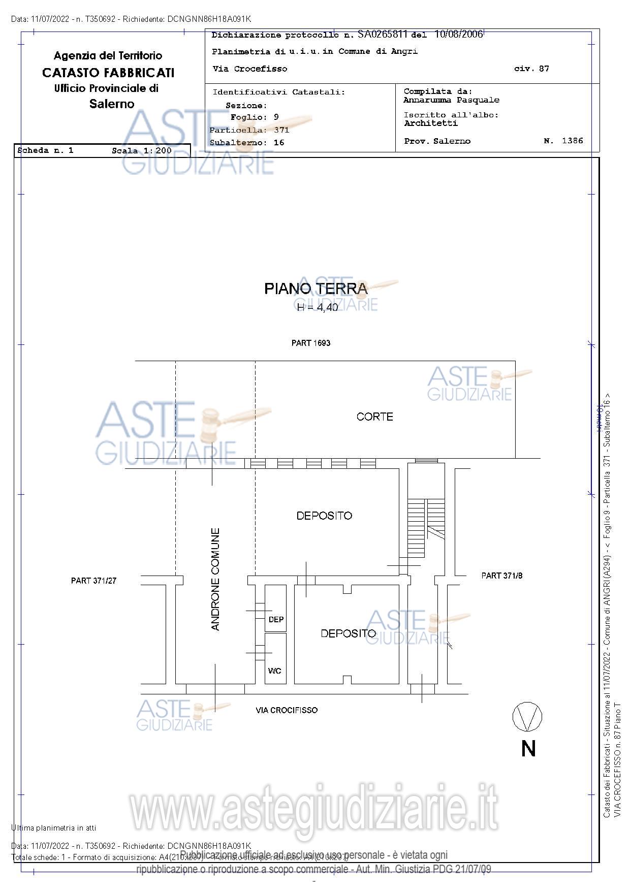 Storage room belonging to the building complex located in the North-West area of the Municipality of Angri on Crocefisso Street No. 87 ground floor. Access is through a common entrance hall that can be reached from Crocefisso Street. It consists of 3 rooms in addition to the bathroom. Prezzo base € 38.082,60 (offerta minima € 34.274,34). Data inizio operazioni di vendita: 25/11/2025 ore 10:00. Giudice Dott. Bianca Manuela Longo. Custode Giudiziario Aste Giudiziarie Inlinea Spa - Email "vendite@astegiudiziarie.it"; Tel. 0586 201480. Curatore Dott. Loredana Cioffi - Tel. 339 64 95 239. Rif. Tribunale di Nocera Inferiore - Fallimentare (nuovo rito) n. 51/2019