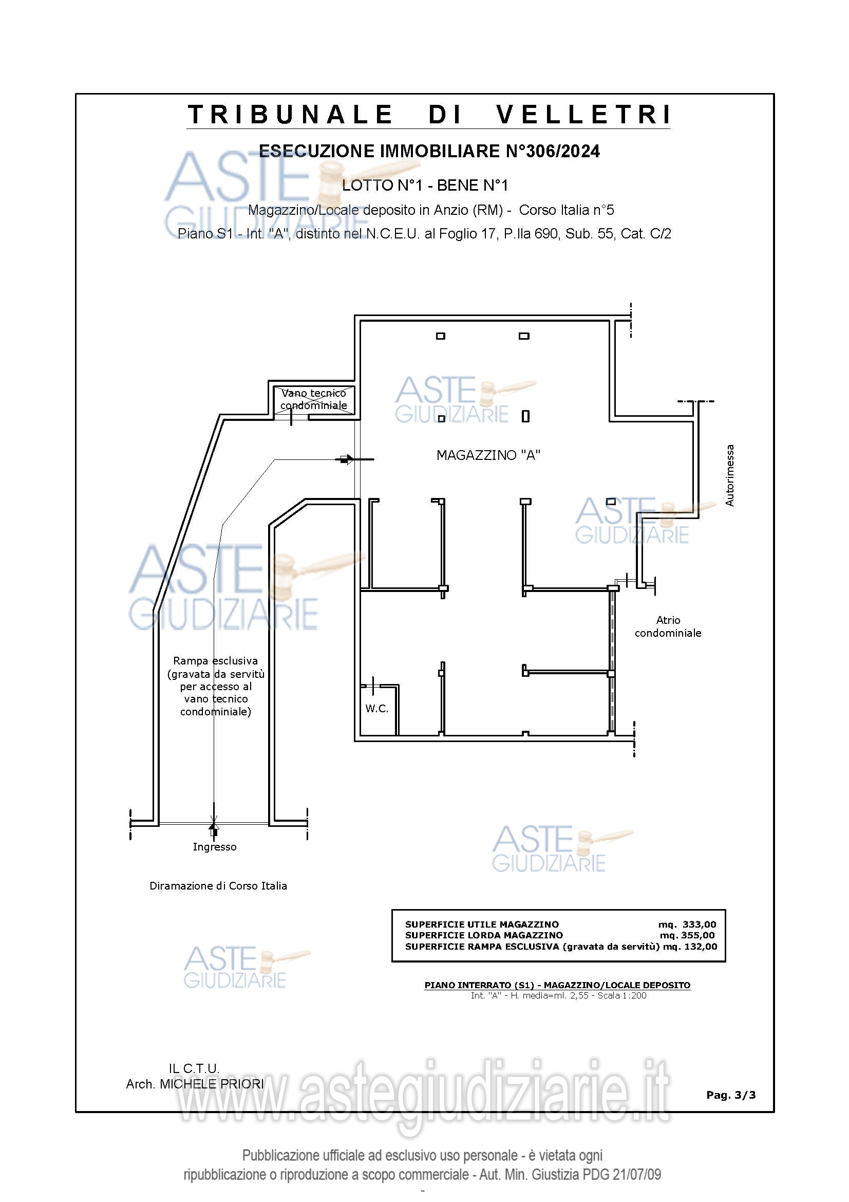 Vendita all'asta Senza incanto, con gara telematica asincrona - LOTTO 1: Piena proprietà di Magazzino. Prezzo base € 95.000,00 (offerta minima € 71.250,00). Data inizio operazioni di vendita: 12/05/2026 ore 11:30. Giudice Di Serafino. Professionista delegato alla vendita Avv. Martina Lenci. Custode Giudiziario Avv. Martina Lenci - Email "martinalenci@hotmail.it". Rif. Tribunale di Velletri - Espropriazione immobiliare (cartabia) n. 306/2024