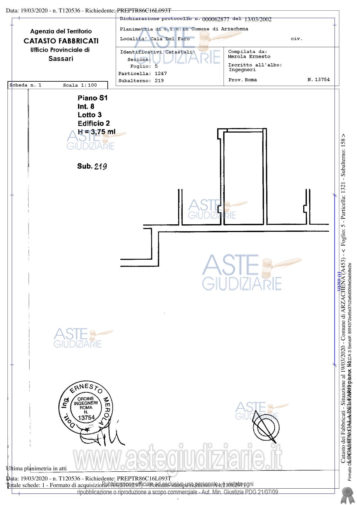 Vendita all'asta Senza incanto, con gara telematica asincrona - LOTTO 7: Piena proprietà del locale magazzino sito nel comune di Arzachena (SS), Località Cala del Faro, piano S1, censito al catasto fabbricati al foglio 5, particella 1321, sub. 188, Cat. C/2, Classe 1, Consistenza 13 mq, superficie catastale 14 mq, rendita catastale euro 69,15, cosi` come meglio descritto nella perizia a firma dell’esperto estimatore a cui si fa integrale riferimento. Prezzo base € 10.950,00 (offerta minima € 8.212,50). Data inizio operazioni di vendita: 13/05/2026 ore 10:30. Giudice Dott. Alessandro Di Giacomo. Professionista delegato alla vendita Avv. Alessandro Accomando - Email "alessandro.accomando@gmail.com"; Tel. 079633133. Custode Giudiziario Ivg Tempio Pausania - Email "visite.ivgtempio@gmail.com"; Tel. 079630505. Rif. Tribunale di Tempio Pausania - Esecuzione immobiliare post legge 80 n. 151/2017