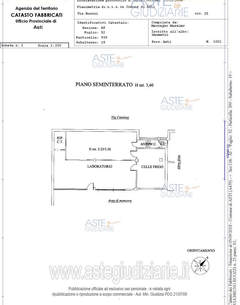 Vendita all'asta Senza incanto, con gara telematica asincrona - LOTTO 2: Magazzino/Laboratorio + locale WC e cella frigorifera posti al piano seminterrato. Prezzo base € 45.716,00 (offerta minima € 34.287,00). Data inizio operazioni di vendita: 04/02/2026 ore 17:00. Professionista delegato alla vendita Avv. Elsa Damaso - Email "damaso.elsa@ordineavvocatiasti.eu"; Tel. 0141-975335. Custode Giudiziario Ifir Piemonte Ivg Srl - Email "richiestevisite.asti@ivgpiemonte.it"; Cell. 3664299971; Tel. 0114731714. Rif. Tribunale di Asti - Esecuzione immobiliare post legge 80 n. 30/2018