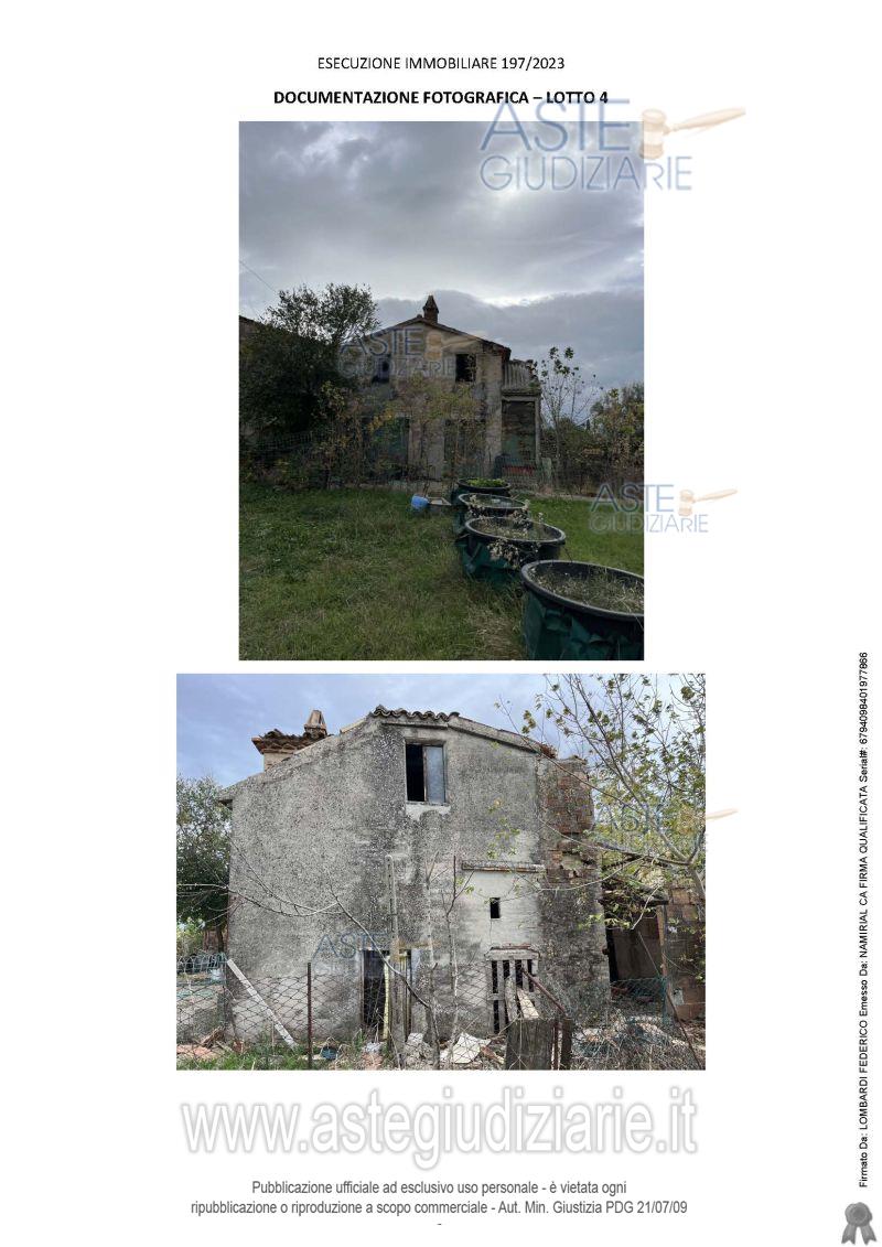 Vendita all'asta Senza incanto, con gara telematica asincrona - LOTTO 4: lotto composto da tre beni: a) magazzino al piano terra e primo; b) Edificio crollato; Appezzamento di terreno in parte agricolo e in parte edificabile ad uso produttivo. Prezzo base € 25.792,00 (offerta minima € 19.345,00). Data inizio operazioni di vendita: 03/02/2026 ore 12:45. Giudice Dott. Maria Letizia Mantovani. Professionista delegato alla vendita Dott. Francesco Cesari. Custode Giudiziario Dott. Francesco Cesari - Email "francesco.cesari@email.it"; Cell. 3287071070. Rif. Tribunale di Ancona - Espropriazione immobiliare (cartabia) n. 197/2023