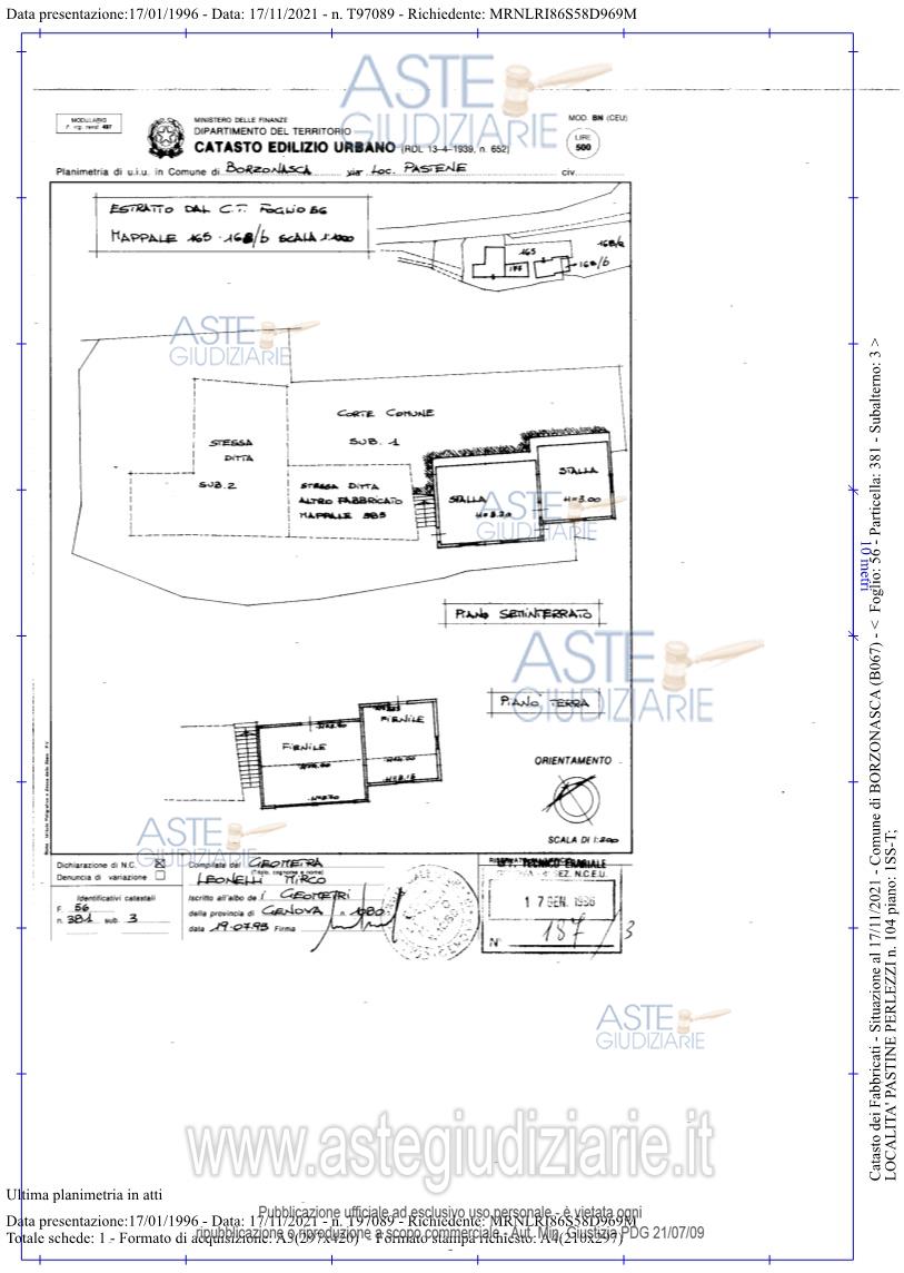 Vendita all'asta Senza incanto, con gara telematica sincrona mista - LOTTO UNICO: In Borzonasca, località Pastine Perlezzi, edificio 105, piena proprietà del caseificio posto al piano 1S, composto da un laboratorio su due piani, un disimpegno e un bagno e del magazzino al piano 1S-PT, strutturato in due corpi di fabbrica, uno regolarmente autorizzato e il secondo totalmente abusivo. Prezzo base € 12.446,93 (offerta minima € 9.335,20). Data vendita 04/12/2025 ore 16:00. Professionista delegato alla vendita Avv. Manuela Ruzzier - Email "m.ruzzier@studiolegalebalbi.it"; Tel. 010252321. Custode Giudiziario Renata Boilini - Email "immobiliare@sovemo.com"; Tel. 0105299253. Rif. Tribunale di Genova - Esecuzione immobiliare post legge 80 n. 416/2021