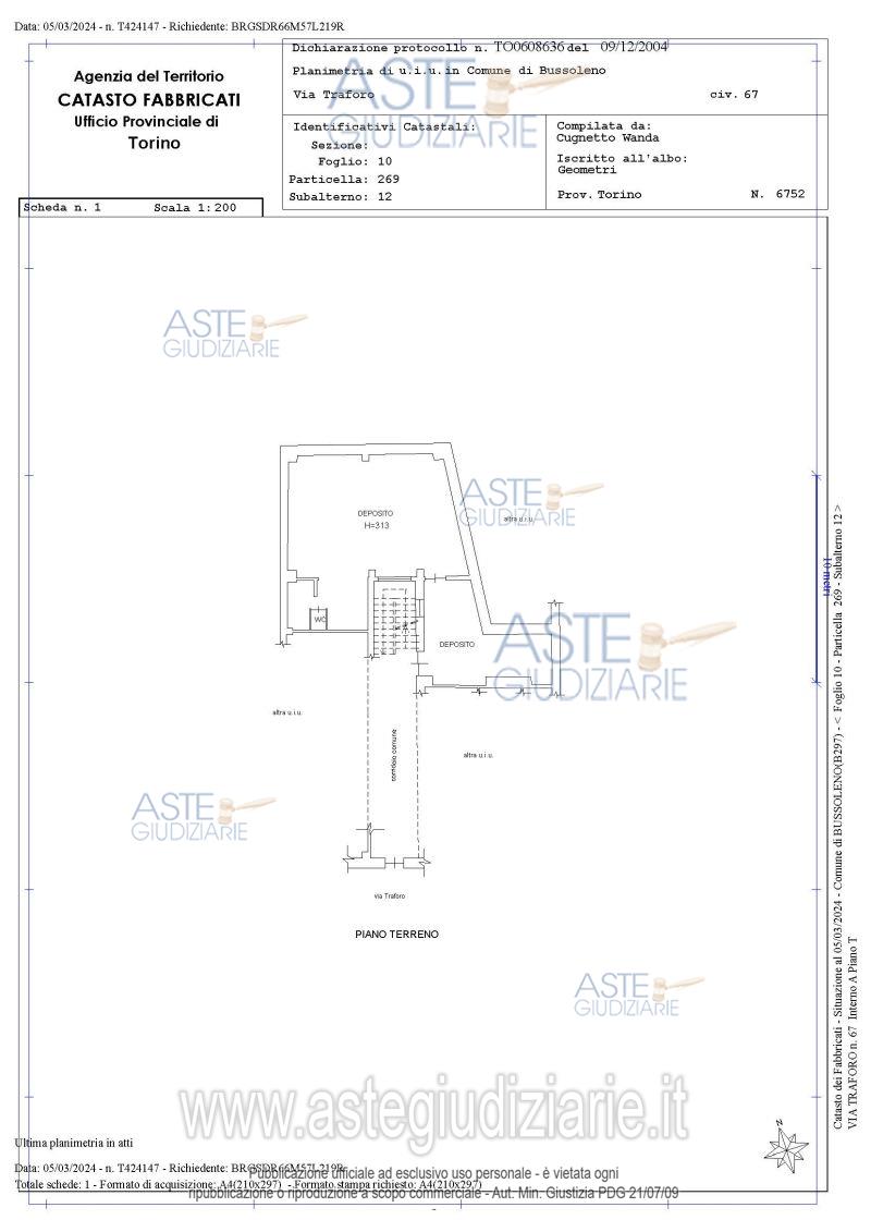 Vendita all'asta Senza incanto, con gara telematica asincrona - LOTTO 1: Al piano terreno (primo fuori terra), con accesso dal vano scala condominiale, magazzino composto da due locali ad uso deposito con servizio e ripostiglio. Prezzo base € 6.000,00 (offerta minima € 4.500,00). Data inizio operazioni di vendita: 19/01/2026 ore 11:30. Giudice Dott. Paola Demaria. Professionista delegato alla vendita Avv. Caterina Bertani - Email "c.bertani@avvocatibdpm.it"; Tel. 0115611772. Custode Giudiziario Ifir Piemonte Ivg S.R.L. - Email "richieste.visite@ivgpiemonte.it"; Tel. 011482822. Rif. Tribunale di Torino - Espropriazione immobiliare (cartabia) n. 842/2023