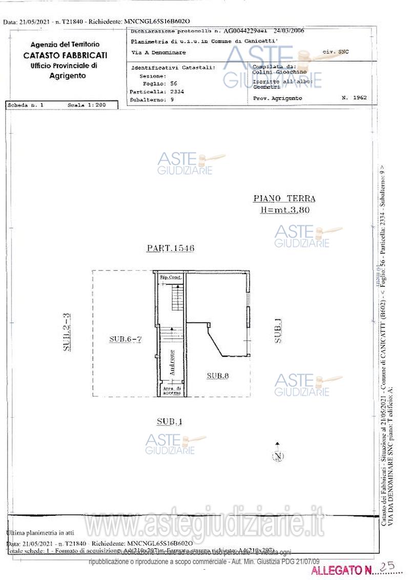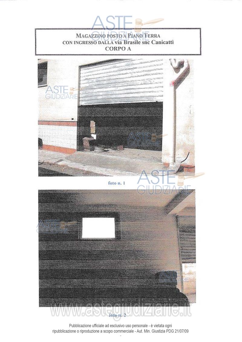 Vendita all'asta Senza incanto, con gara telematica sincrona mista - LOTTO 3: Piena proprietà per la quota di 1000/1000 di magazzino ubicato a Canicattì (Agrigento) via Brasile snc.Composto da un unico vano con ingresso da via Brasile attraversando un’area d’accesso comune. L’unità immobiliare si trova al piano terra.Identificato al catasto fabbricati al foglio 56 mappale 2334 subalterno 9, categoria C/2, classe 1. Prezzo base € 4.484,07 (offerta minima € 3.363,05). Data vendita 21/04/2026 ore 16:30. Professionista delegato alla vendita Avv. Carmen Augello - Email "carmen.augello@gmail.com"; Cell. 3385852370; Tel. 0922854658. Custode Giudiziario Loredana Danile - Email "avvocatoldanile@gmail.com"; Cell. 3314036381; Tel. 092222117. Rif. Tribunale di Agrigento - Esecuzione immobiliare post legge 80 n. 18/2021