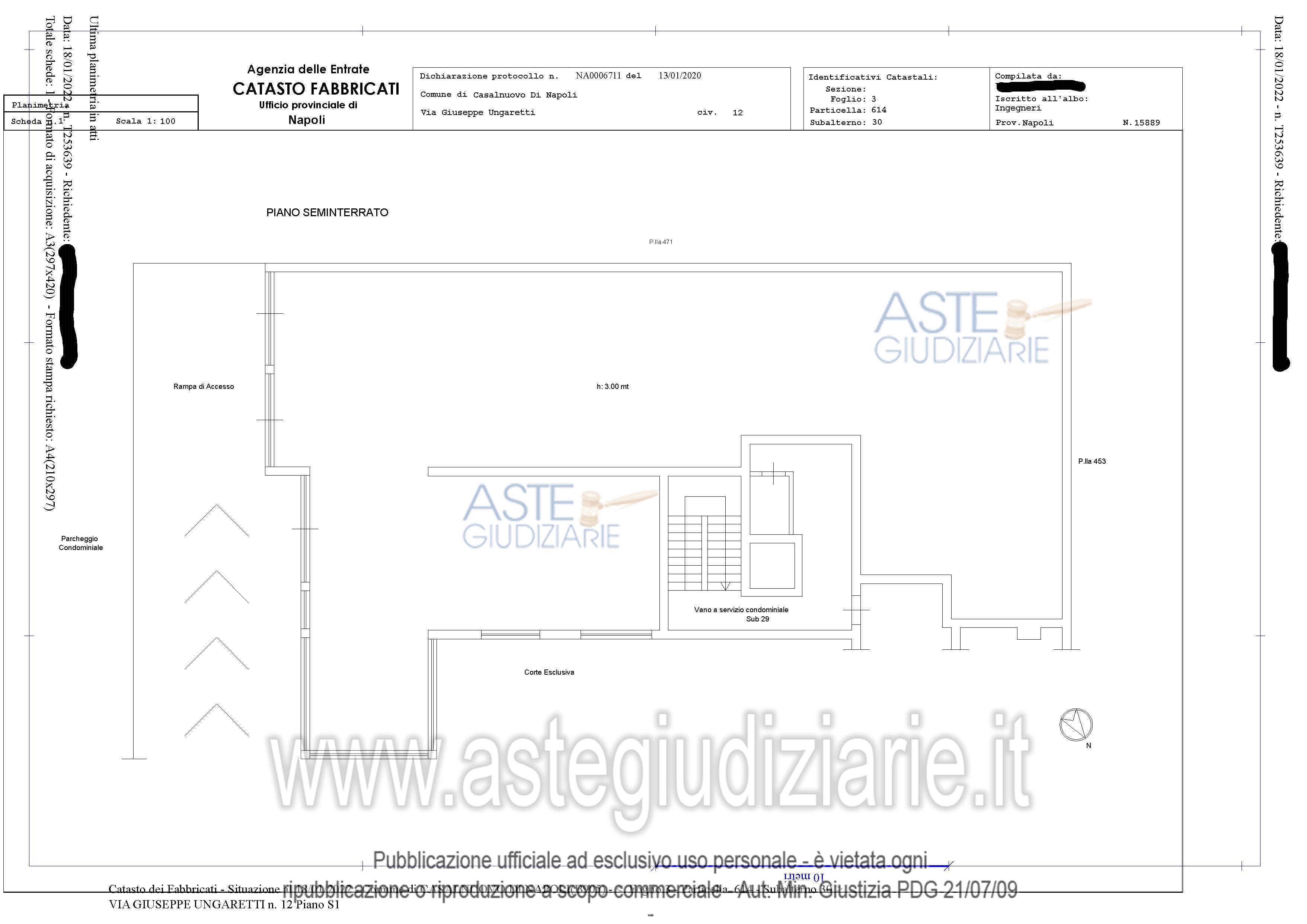 Vendita all'asta Senza incanto, con gara telematica asincrona - LOTTO UNICO: In Casalnuovo di Napoli (NA), Via Giuseppe Ungaretti n. 12:- locale deposito al piano seminterrato avente accesso da una rampa carrabile, superficie lorda mq 318;- locale deposito al piano seminterrato avente accesso sia attraverso il locale sub 30 sia dal vano scala riportato in catasto con il sub 29, superficie lorda 35 mq. Prezzo base € 77.883,00 (offerta minima € 58.412,25). Data inizio operazioni di vendita: 19/05/2026 ore 10:00. Professionista delegato alla vendita Avv. Daniela Nappi - Email "avv.danielanappi@gmail.com"; Tel. 0815586421. Custode Giudiziario Avv. Daniela Nappi - Email "avv.danielanappi@gmail.com"; Tel. 0815586421. Rif. Tribunale di Nola - Esecuzione immobiliare post legge 80 n. 64/2021