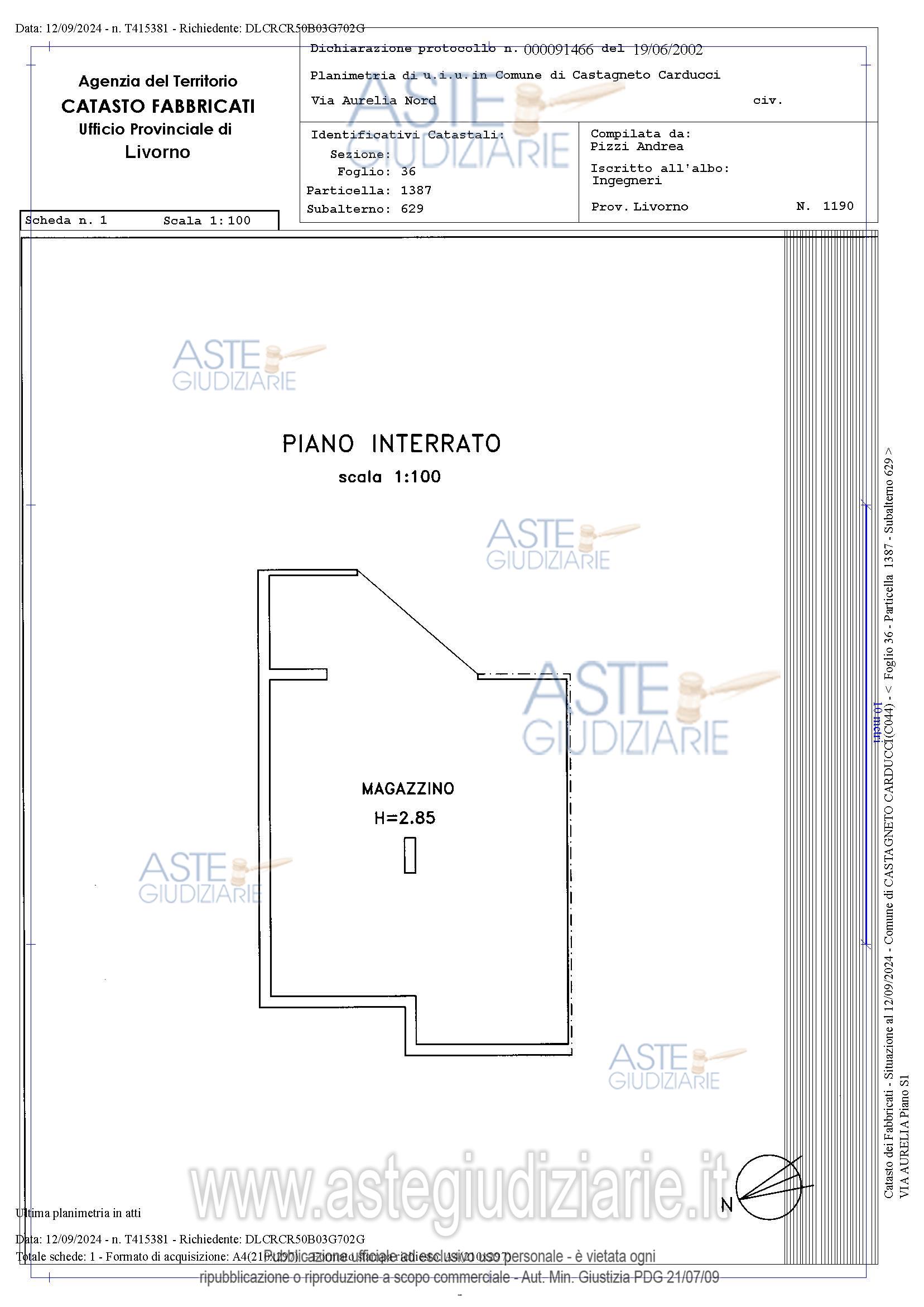 Vendita all'asta Senza incanto, con gara telematica asincrona - LOTTO 1: Piena proprietà di fondo ad uso magazzino, al piano seminterrato, composto da un unico vano. Prezzo base € 35.600,00 (offerta minima € 26.700,00). Data inizio operazioni di vendita: 26/11/2025 ore 11:00. Giudice Simona Capurso. Professionista delegato alla vendita Avv. Ilaria Morelli - Email "avvmorelli@imorelli.it"; Cell. 3333440589. Custode Giudiziario Ivg - Email "prenotazionilivorno@astagiudiziaria.com". Rif. Tribunale di Livorno - Espropriazione immobiliare (cartabia) n. 88/2024
