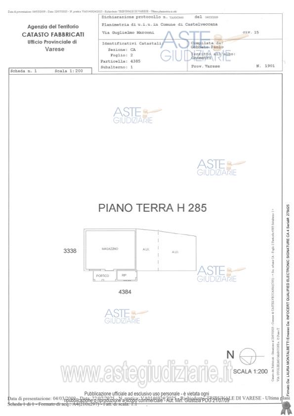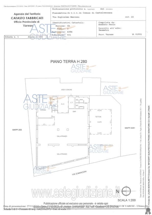 Vendita all'asta Senza incanto, con gara telematica sincrona mista - LOTTO UNICO: Comune di Castelveccana (VA), via Marconi n. 25, piena ed intera proprietà di unità immobiliare a destinazione commerciale, attualmente utilizzata come ristorante-pizzeria, situata a piano terra di complesso edilizio con altezza massima di n. 2 piani, superficie catastale 259 mq e di magazzino/deposito, situato a piano terra, superficie catastale 46 mq. Prezzo base € 314.300,00 (offerta minima € 235.725,00). Data vendita 14/05/2026 ore 11:00. Professionista delegato alla vendita Avv. Gian Carlo Baranzini - Email "gbaranzini@studiobaranzini.it"; Tel. 03311586356. Rif. Tribunale di Varese - Espropriazione immobiliare (cartabia) n. 91/2025