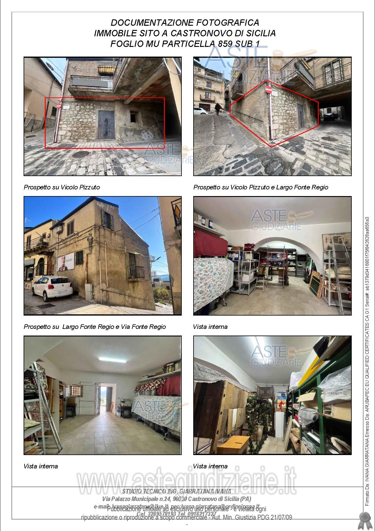 Vendita all'asta Senza incanto, con gara telematica sincrona - LOTTO 1: L’ immobile oggetto di stima ricade in Zona Territoriale Omogenea “A” Unità edilizia a destinazione residenziale. Trattasi di un immobile adibito a magazzino posto al piano terra di un fabbricato a due elevazioni fuori terra da Vicolo Esso è composto all’interno da un unico vano con ampio arco portante in muratura posto in posizione quasi centrale. L’aerazione ed illuminazione del locale avviene a mezzo di una piccola finestra posta sul fronte sud prospiciente Vicolo Pizzuto. Prezzo base € 7.165,18 (offerta minima € 5.373,88). Data vendita 01/04/2026 ore 16:30. Professionista delegato alla vendita Avv. Maria Irene Eliana Guarino - Email "avv.mariaguarino92@gmail.com"; Cell. 3343396810; Tel. 3343396810. Custode Giudiziario Avv. Maria Irene Eliana Guarino - Email "avv.mariaguarino92@gmail.com"; Cell. 3343396810; Tel. 3343396810. Rif. Tribunale di Termini Imerese - Espropriazione immobiliare (cartabia) n. 129/2024