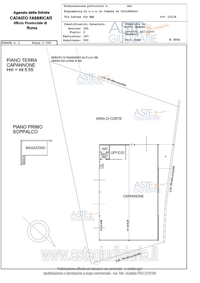 Vendita all'asta Senza incanto, con gara telematica asincrona - LOTTO UNICO: CAPANNONE C/2 ADIBITO A MAGAZZINO E LOCALE DEPOSITO, STRUTTURA PREFABBRICATA IN FERRO E CEMENTO PIANO TERRA, CON ANNESSA CORTE GRAFFATA, CAPANNO, UFFICIO SERVIZI IGIENICI, MAGAZZINO SOPPALCATO, COMPLESSIVI MQ. 255,76. Prezzo base € 30.256,35 (offerta minima € 22.692,26). Data inizio operazioni di vendita: 26/02/2026 ore 15:00. Giudice Dott. Anna Luisa Di Serafino. Professionista delegato alla vendita Avv. Daniela Segnalini - Email "studio.segnalini@gmail.com"; Tel. 0693020074. Custode Giudiziario Avv. Daniela Segnalini - Email "studio.segnalini@gmail.com"; Tel. 0693020074. Rif. Tribunale di Velletri - Esecuzione immobiliare post legge 80 n. 492/2014