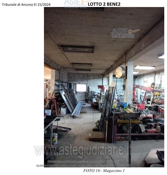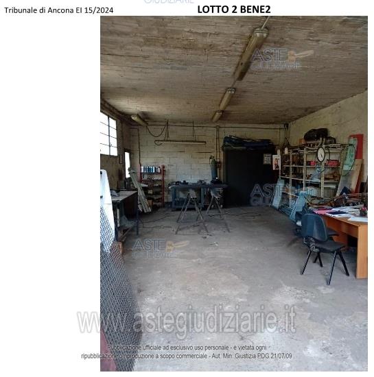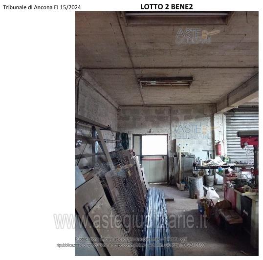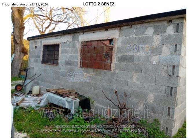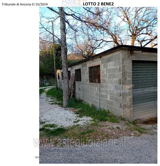 Vendita all'asta Senza incanto, con gara telematica asincrona - LOTTO 2: Edificio isolato destinato a MAGAZZINO ad un solo piano TERRA e circondato da una corte (ente urbano). Prezzo base € 20.265,00 (offerta minima € 15.199,00). Data inizio operazioni di vendita: 09/04/2026 ore 10:30. Professionista delegato alla vendita Avv. Lorenzo Cagli. Custode Giudiziario Avv. Lorenzo Cagli - Email "lorenzo.cagli@eudike.eu"; Tel. 0712072313. Rif. Tribunale di Ancona - Espropriazione immobiliare (cartabia) n. 15/2024