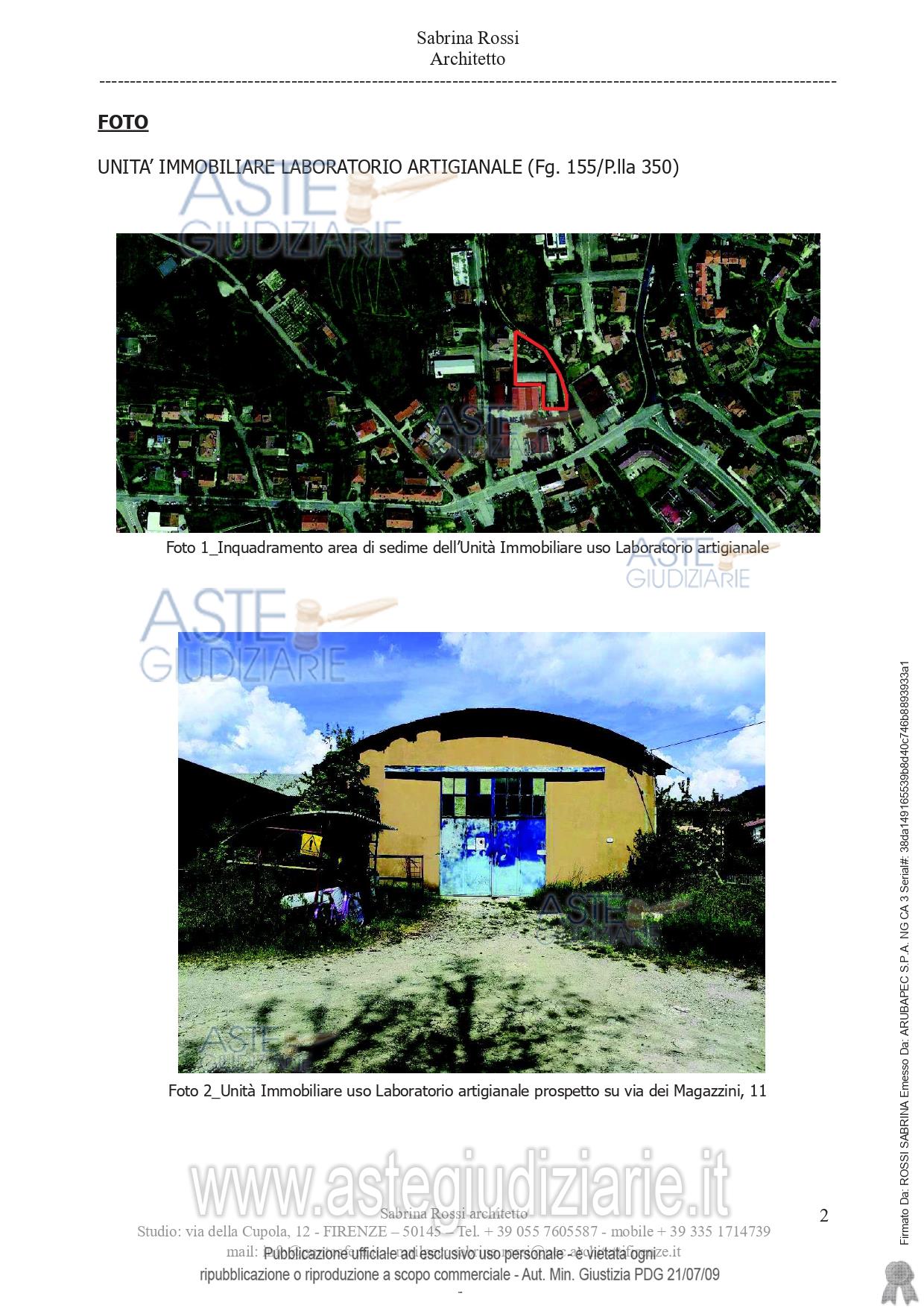Vendita all'asta Senza incanto, con gara telematica sincrona - LOTTO 1: Piena proprietà di un fabbricato ad uso laboratorio per arti e mestieri, ubicato all’interno del centro urbano del comune di Firenzuola (FI), via dei Magazzini n. 11, piano terra, costituito da due ampi vani uso laboratorio, oltre a spogliatoio, bagno, ripostiglio, sottotetto e resede esclusiva. Prezzo base € 215.500,00 (offerta minima € 161.625,00). Data vendita 09/06/2026 ore 12:00. Giudice Dott. Agata Stanga. Professionista delegato alla vendita Avv. Elena Bellandi - Email "segreteria@ebstudiolegale.it". Custode Giudiziario Istituto Vendite Giudiziarie Di Firenze - Email "prenota.fi@isveg.it"; Tel. 0552340830. Rif. Tribunale di Firenze - Contenzioso civile n. 10032/2023