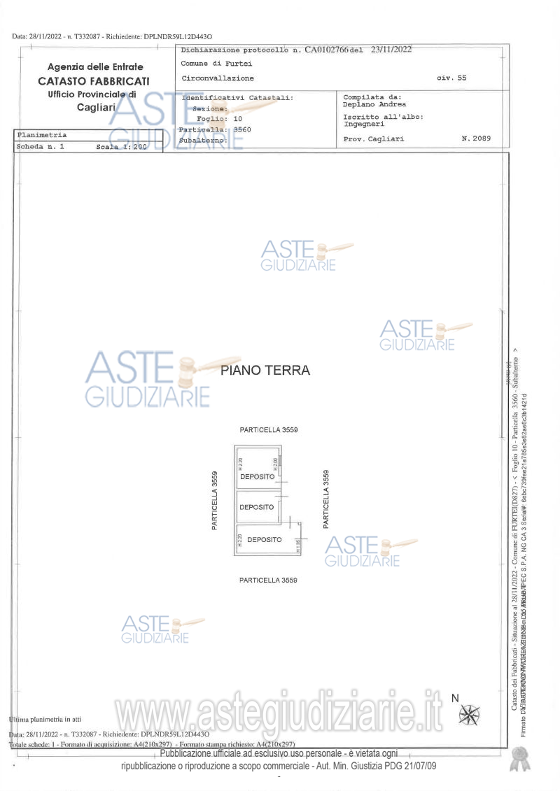 Custode Giudiziario: Ivg Cagliari - Email "ivg.visiteimmobili@tiscali.it"; Tel. 070/2299036.