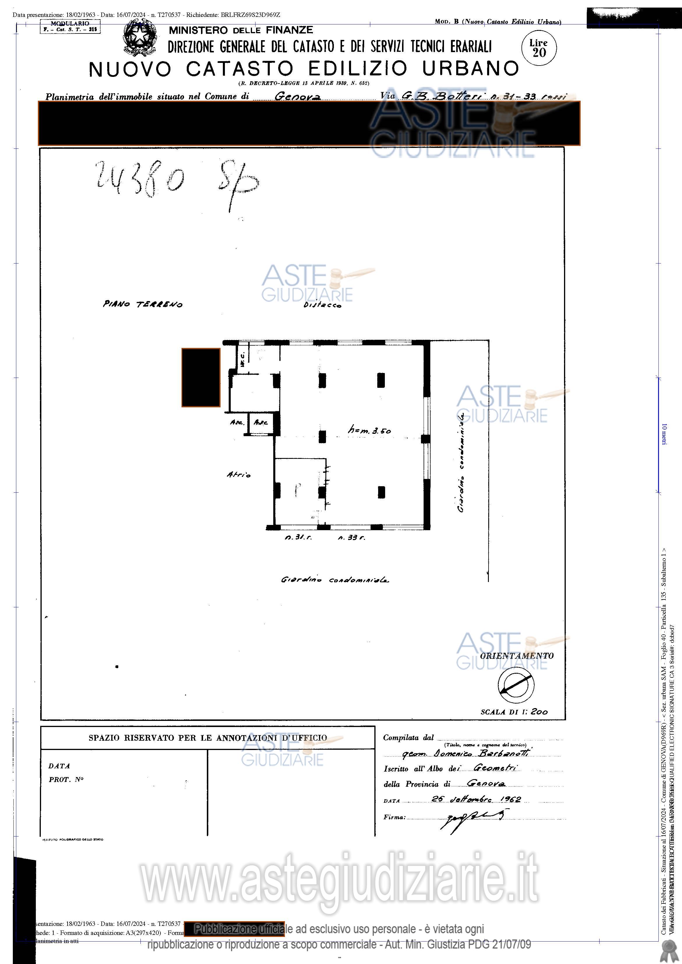 Vendita all'asta Senza incanto, con gara telematica sincrona mista - LOTTO UNICO: Piena proprietà di magazzino sito in Genova, Via G.B. Botteri 31R-33R, piano terra, facente parte del caseggiato distinto con il civico n. 3 di Via Botteri, della superficie convenzionale complessiva di mq. 244,90. Prezzo base € 69.187,50 (offerta minima € 51.890,63). Data vendita 14/11/2025 ore 15:00. Professionista delegato alla vendita Dott. Fabio Gardella - Email "fabio.gardella@genoachambers.it"; Tel. 0105700122. Custode Giudiziario Sovemo - Email "immobiliare@sovemo.com". Rif. Tribunale di Genova - Esecuzione immobiliare post legge 80 n. 428/2019