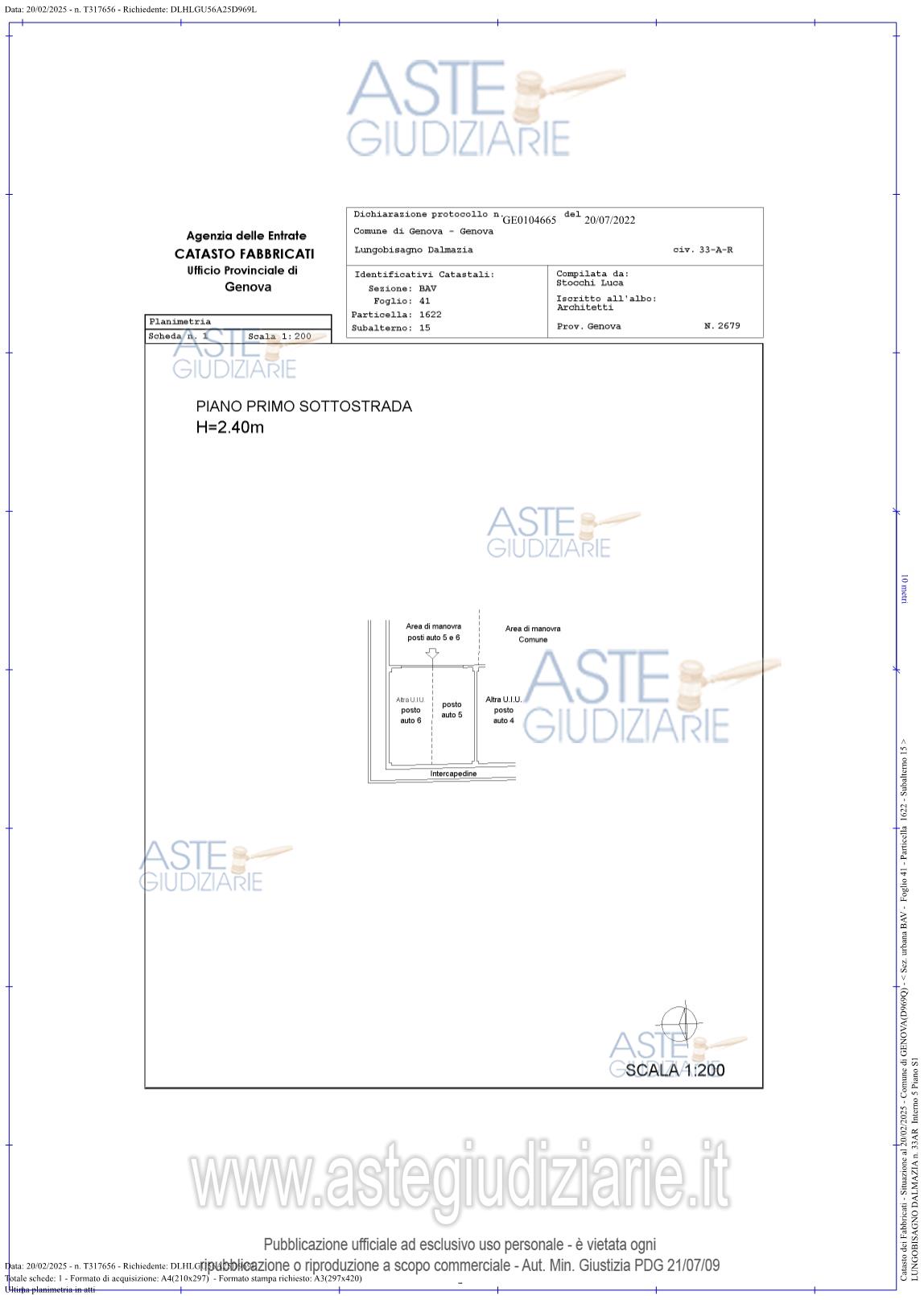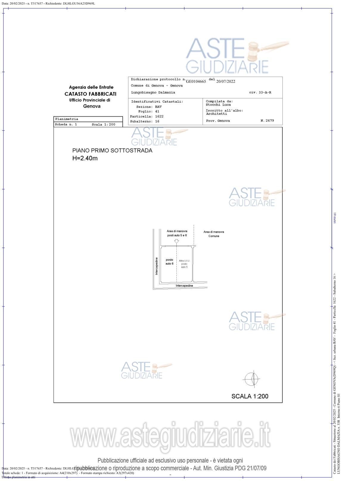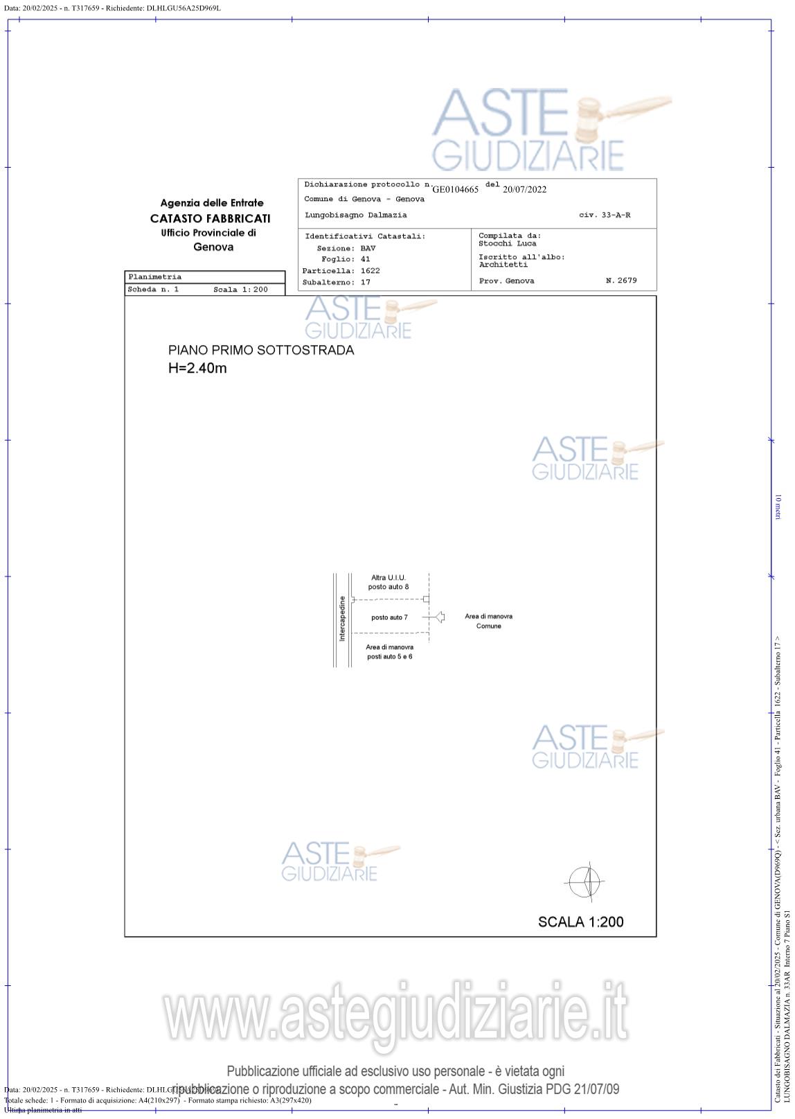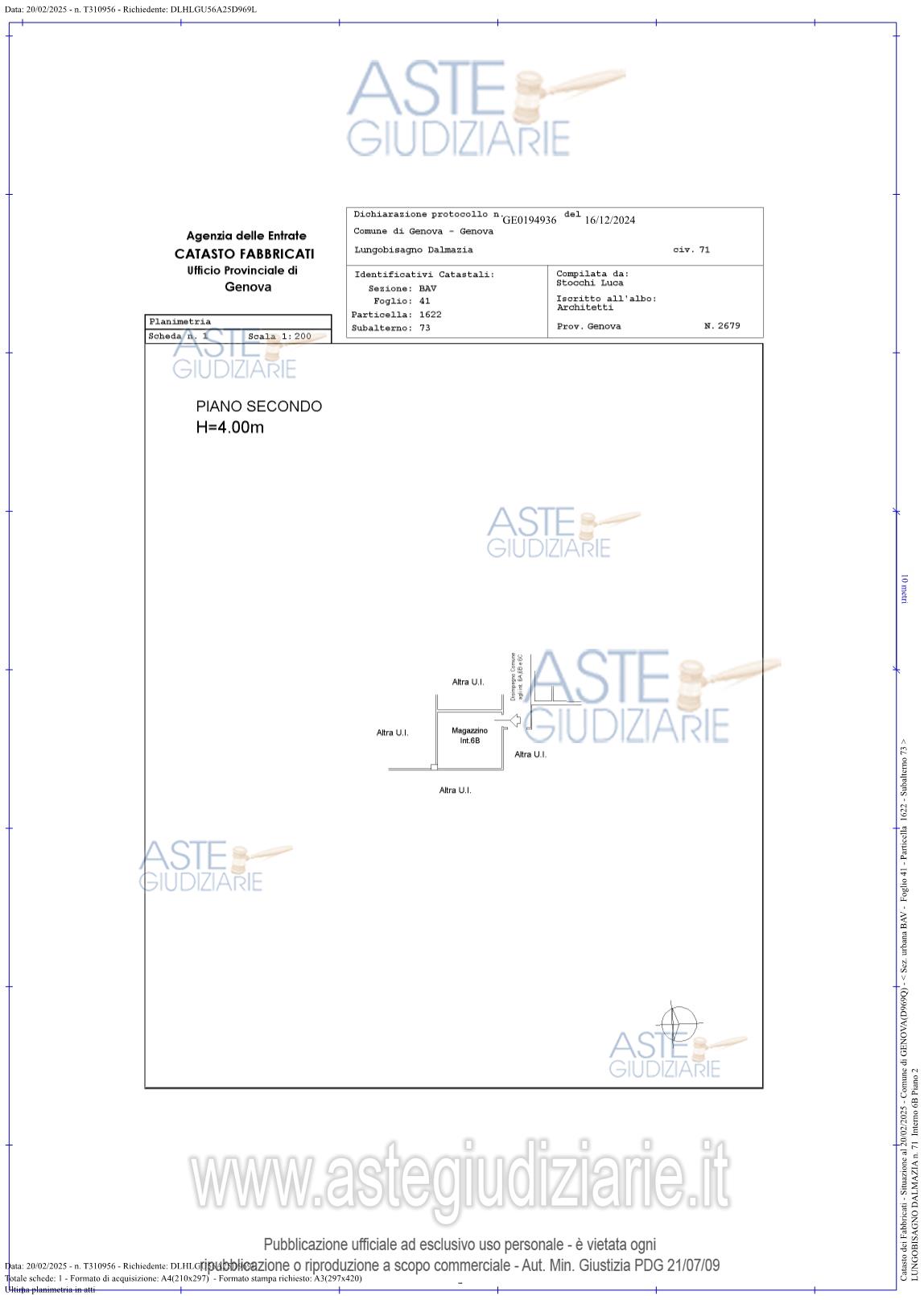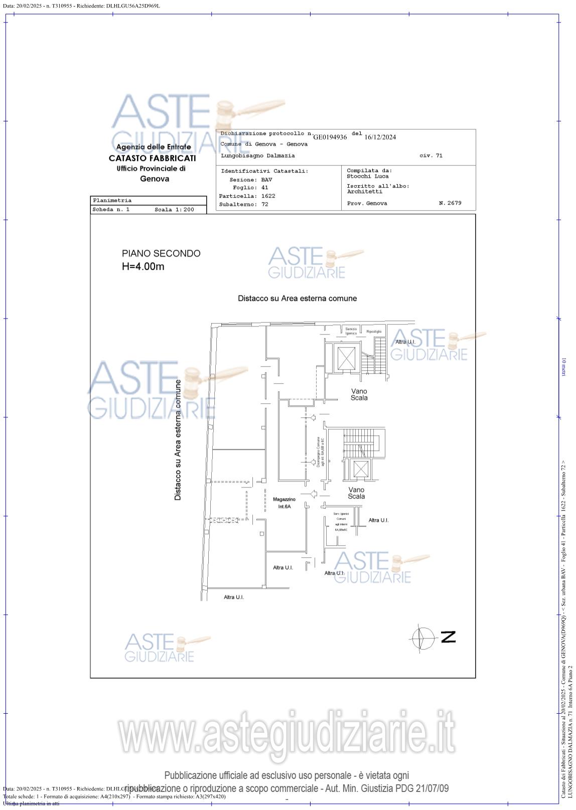 Vendita all'asta Senza incanto, con gara telematica sincrona mista - LOTTO UNICO: Lotto unico costituito da: A) compendio immobiliare in Genova, Lungobisagno Dalmazia n. 33 e 71, interni 6a, 6b, 6c e 7, posto al 2 piano (3 f.t.), comprensivo di diversi locali adibiti a magazzino, uffici e laboratorio per una superficie totale di c.a. 1130 mq., oltre a 3 posti auto coperti (n.1 di 13 mq, n. 7 di 14 mq e n. 8 di 18 mq) e a un box formato dai posti auto coperti nn. 5 e 6 di mq. 33, posti al piano S1; B) arredi ed attrezzatura varia da ufficio siti nei locali come da inventario allegato. Prezzo base € 822.136,00 (offerta minima € 698.816,00). Data vendita 14/05/2026 ore 15:30. Giudice Dott. Chiara Monteleone. Rif. Tribunale di Genova - Nuovo concordato preventivo n. 26/2014