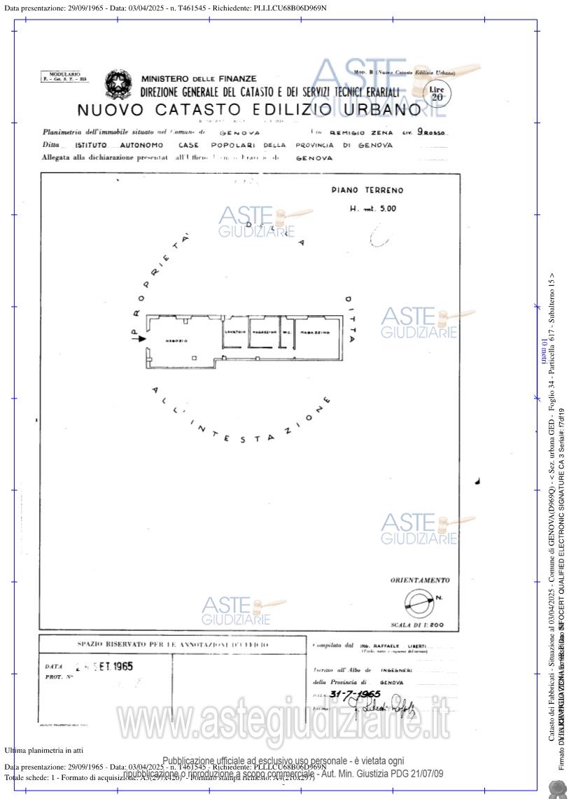 Vendita all'asta Senza incanto, con gara telematica sincrona mista - LOTTO 2: unità ad uso commerciale in Via Remigio Zena 9 rossoL’ immobile è posto al piano seminterrato del fabbricato ed è composta da un ambiente adibito originariamente ad area di esposizione e vendita, n. tre locali ad uso magazzino ed un w.c. – dotato di antibagno -, oltre ai disimpegni, ed ha annesso altresì un soppalco.Superficie lorda circa mq. 108.00 . Prezzo base € 33.300,00 (offerta minima € 24.975,00). Data vendita 12/12/2025 ore 15:00. Rif. Tribunale di Genova - Liquidazione giudiziale(cci) n. 67/2024