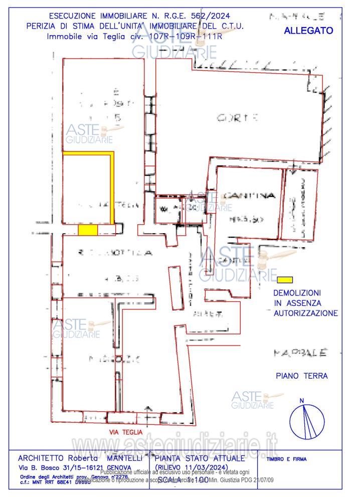 Vendita all'asta Senza incanto, con gara telematica sincrona mista - LOTTO UNICO: locale commerciale sito a Genova- circoscriz Valpolcevera- Via Teglia n.107R piano terra con tre separati accessi si compone di due ampi ambienti principali con divisioni interne, tre ambienti secondari ed un servizio igienico con ampio cortile esterno, locale accessibile da quest’ultimo. Ben collegata con il centro cittadino, dista 8 km dal casello autostradale di Genova Ovest e 3 km dal casello di Genova Bolzaneto. Presente slargo laterale al locale che consente sosta per carico-scarico. Prezzo base € 49.500,00 (offerta minima € 37.125,00). Data vendita 05/05/2026 ore 12:30. Giudice Andrea Balba. Professionista delegato alla vendita Avv. Giulia Gavioli - Email "giuliagav@libero.it"; Cell. 3386534652; Tel. 0105705020. Custode Giudiziario Dott. Sovemo Srl - Email "visitegenova@sovemo.com"; Tel. 0105299253. Rif. Tribunale di Genova - Espropriazione immobiliare (cartabia) n. 562/2024