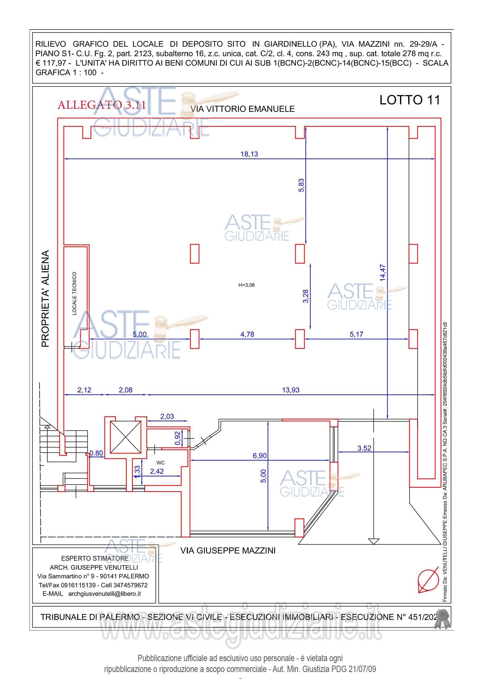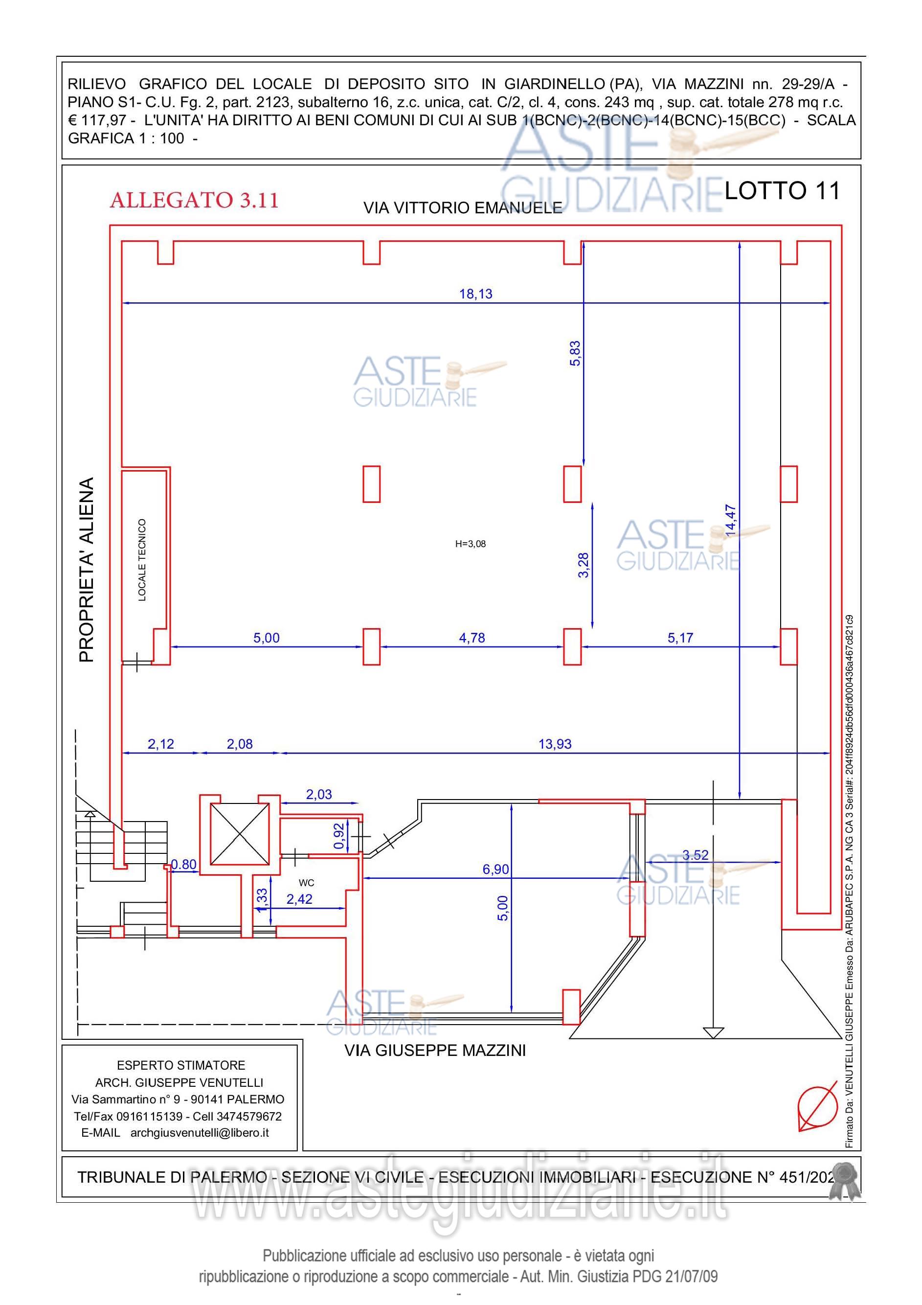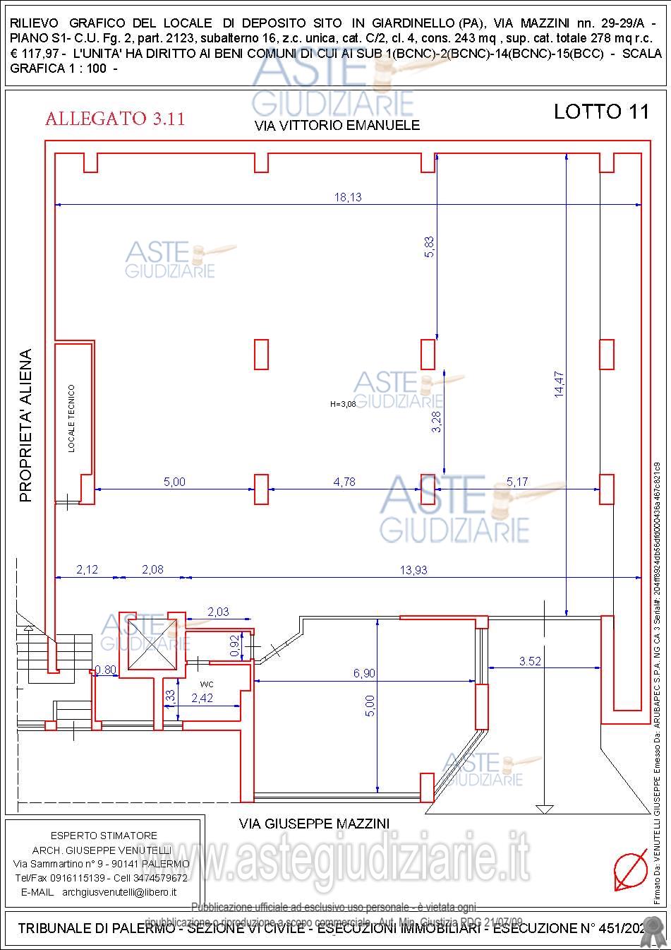 Vendita all'asta Senza incanto, con gara telematica sincrona mista - LOTTO UNICO: LOTTO 9: piena e intera proprietà locale commerciale in Giardinello, via Giuseppe Mazzini n. 31, piano 1-Sup.Comm.mq.424,03-C.F.Fg.2 p.lla 2123 sub 13 - Categoria C2 - Fg.2 p.lla 2123 sub 15 - Categoria C6 - LIBERO. Prezzo base € 26.071,88 (offerta minima € 19.553,91). Data vendita 20/05/2026 ore 10:00. Professionista delegato alla vendita Avv. Alessandro D'avenia - Email "info@dagape.it"; Cell. 3896777421; Tel. 091322911. Custode Giudiziario Avv. Alessandro D'avenia - Email "info@dagape.it"; Cell. 3896777421; Tel. 091322911. Rif. Tribunale di Palermo - Esecuzione immobiliare post legge 80 n. 451/2021