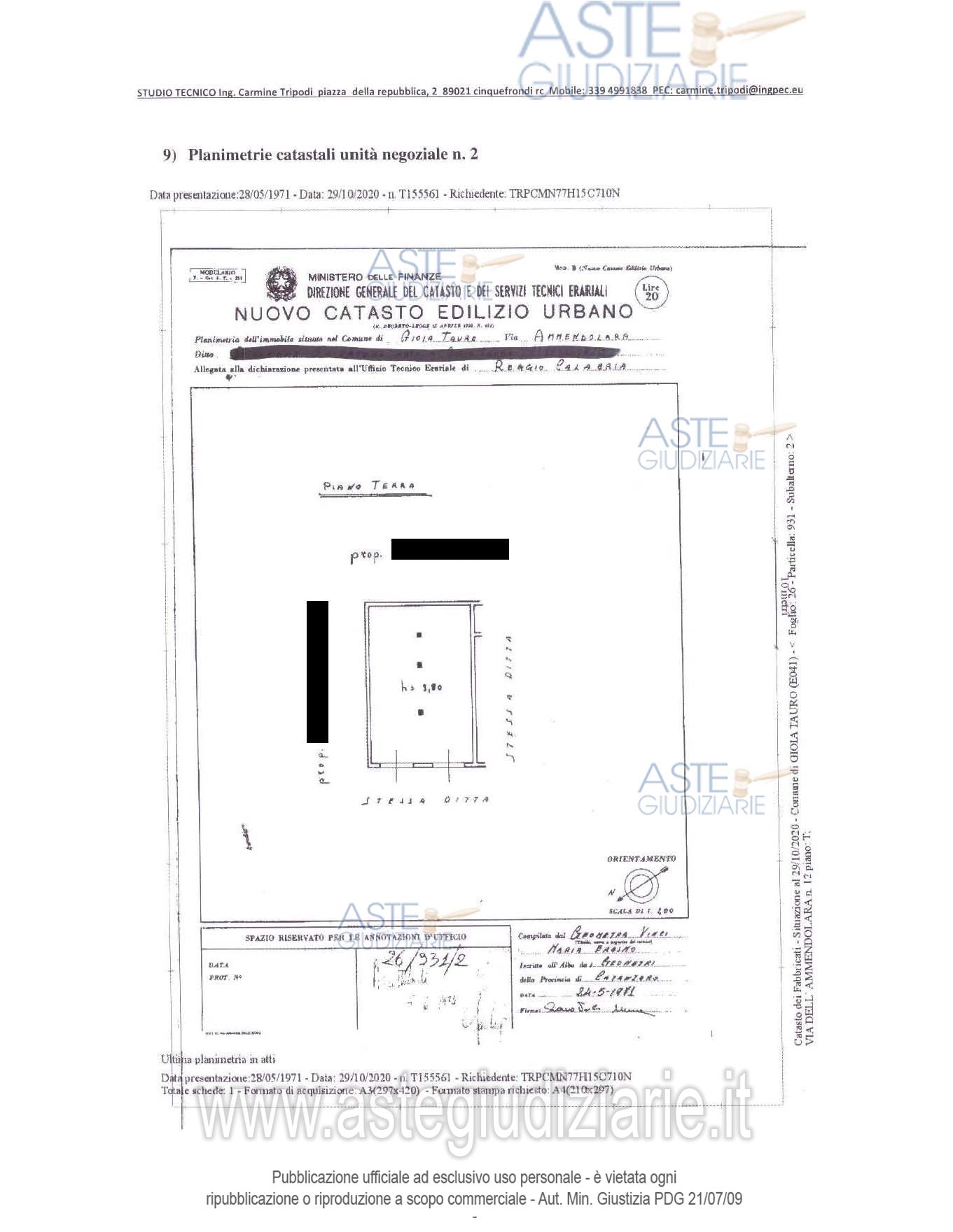 Vendita all'asta Senza incanto, con gara telematica asincrona - LOTTO 2: 1/1 di Porzione di garage al PT. L’immobile, ambiente unico, si presenta con buon grado di conservazione, risulta allo stato rustico e viene utilizzato di fatti come garage. Per il fabbricato si è accertata la presenza dello impianto elettrico, Cat. C/2, Cl 3, 142 mq. L’immobile è libero per la procedura. Prezzo base € 15.945,73 (offerta minima € 11.959,30). Data inizio operazioni di vendita: 20/02/2026 ore 10:00. Giudice Dott. Marta Caineri. Professionista delegato alla vendita Rag. Santo Arcangelo Ciccone - Email "posta@studiociccone.it"; Tel. 3926072310. Custode Giudiziario Rag. Santo Arcangelo Ciccone - Email "posta@studiociccone.it"; Tel. 3926072310. Rif. Tribunale di Palmi - Esecuzione immobiliare post legge 80 n. 35/2020