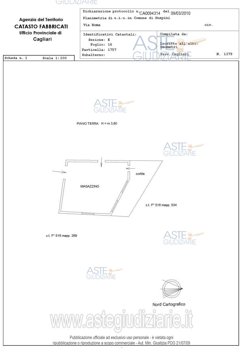 LOTTO UNICO: Full and perfect ownership of the warehouse located on the ground floor with an attached courtyard of approximately 30 square meters. . Ultimo prezzo base € 13.122,00 (offerta minima € 13.122,00). Vendita in attesa dell'emissione del nuovo bando d'asta. Giudice Dott. Gaetano Savona. Professionista delegato alla vendita Dott. Alessandra Corona - Tel. 070 68 48 791. Rif. Tribunale di Cagliari - Liquidazione giudiziale(cci) n. 35/2023