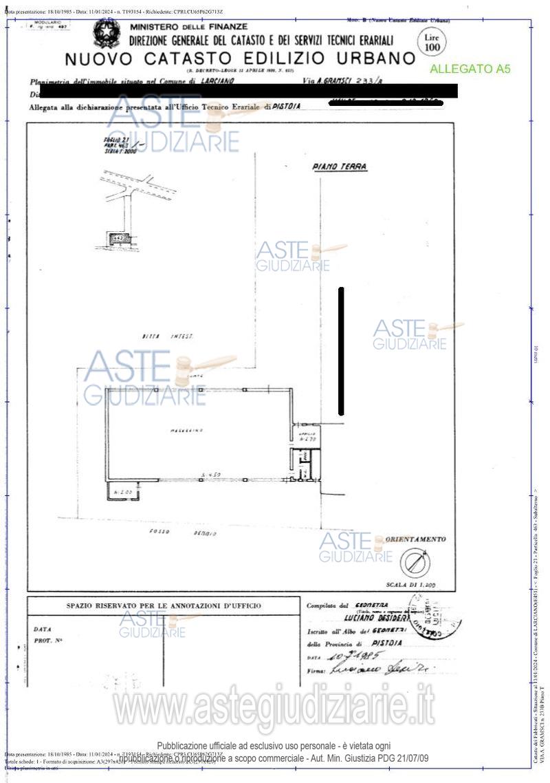 Vendita all'asta Senza incanto, con gara telematica asincrona - LOTTO 3: PIENA PROPRIETà DI MAGAZZINO POSTO IN LARCIANO (PT), VIA A. GRAMSCI N. 1991 E TERRENO EDIFICABILE AD ESSO ADIACENTE. Prezzo base € 211.000,00 (offerta minima € 158.250,00). Data inizio operazioni di vendita: 08/07/2026 ore 10:00. Professionista delegato alla vendita Avv. Roberta Bechi - Tel. 057327056. Custode Giudiziario Isveg - Email "prenota.pt@isveg.it". Rif. Tribunale di Pistoia - Contenzioso civile n. 950/2024