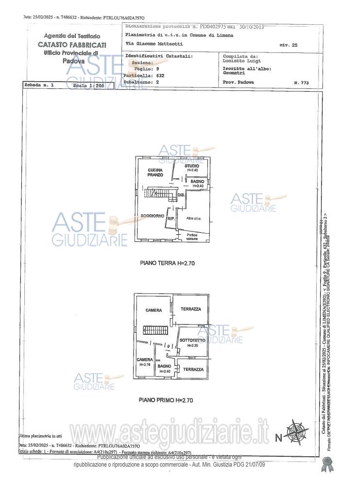 Vendita all'asta Senza incanto, con gara telematica sincrona - LOTTO 1: Il laboratorio è un immobile isolato inserito in un complesso di case a schiera terra/cielo, trattasi di 4 vani a uso laboratorio collegati fra loro ed un bagno con antibagno al piano terra e altri. Prezzo base € 40.000,00 (offerta minima € 30.000,00). Data vendita 20/03/2026 ore 14:45. Giudice Giovanni G Amenduni. Professionista delegato alla vendita Avv. Alice Lin - Email "alice.lin@avvocatolin.it". Custode Giudiziario Avv. Alice Lin - Email "alice.lin@avvocatolin.it"; Cell. 3471388325; Tel. 049656613. Rif. Tribunale di Padova - Espropriazione immobiliare (cartabia) n. 381/2024