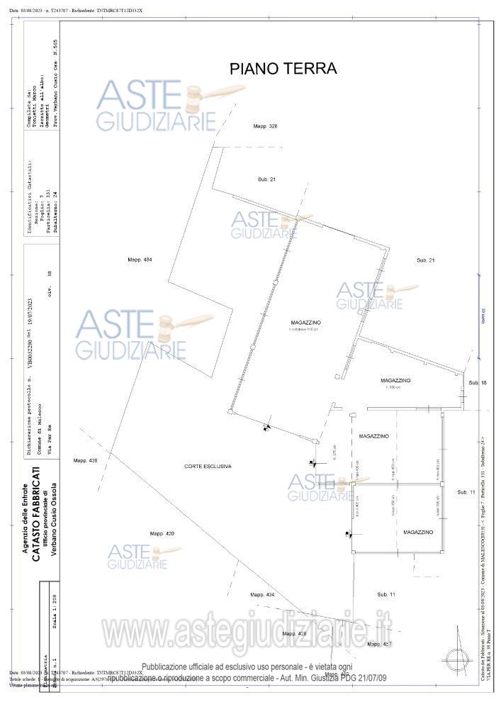Vendita in attesa dell'emissione del nuovo bando d'asta. LOTTO UNICO: Magazzino, edifici a destinazione particolare, locale caldaia, cabina elettrica, terreno e altro magazzino. Ultimo prezzo base € 193.000,00 (offerta minima € 144.750,00). Giudice Dott. Antonietta Sacco. Custode Giudiziario Aste Giudiziarie Inlinea Spa - Email "ufficiocustodie@astegiudiziarie.it". Rif. Tribunale di Verbania - Esecuzione immobiliare post legge 80 n. 82/2022