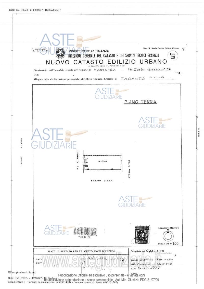 Vendita all'asta Senza incanto, con gara telematica asincrona - LOTTO UNICO: Piena proprietà del locale sito in Massafra (Ta), Via Carlo Poerio n.54, piano rialzatodella superficie lorda di 180 mq. circa, superficie utile 162 mq. circa, distinto nelCatasto fabbricati del Comune di Massafra al foglio 115, P.lla 1834 sub 3, categoriaC/1 di 2^ cl., consistenza 44 mq., rendita Euro 409,03; foglio 115, P.lla 1834 sub 4,categoria C/1 di 3^ cl., consistenza 110 mq., rendita Euro 1.193,01. Prezzo base € 108.750,00 (offerta minima € 81.562,50). Data inizio operazioni di vendita: 02/12/2025 ore 16:00. Custode Giudiziario Avv. Giovanni Lenoci - Email "studiolenocig@libero.it". Curatore Avv. Giovanni Lenoci. Rif. Tribunale di Taranto - Fallimentare (nuovo rito) n. 9/2022
