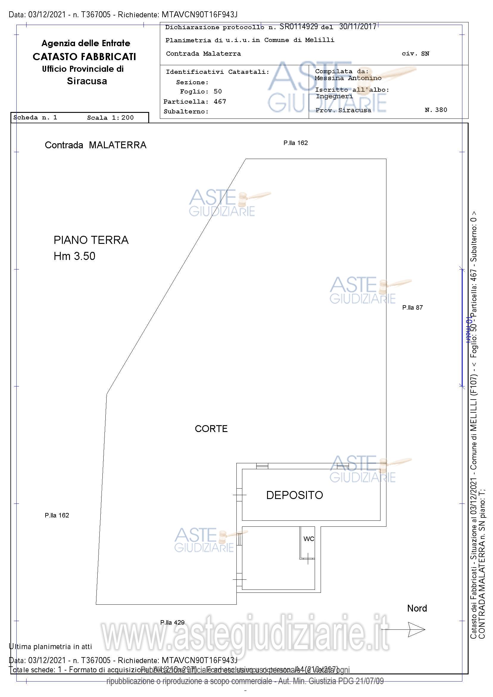 Vendita all'asta Senza incanto, con gara telematica sincrona mista - LOTTO 3: 1/1 di proprietà di magazzino con relativo terreno di pertinenza in Melilli, c.da Cozzo Barone- Malaterra, nel C.F. al fg. 50, p.lla 467 e nel C.T. al fg. 50, p.lla 87. L’immobile è stato costruito in data anteriore al 1967 e per esso non è stata rilasciato il certificato di agibilità. Disponibilità del bene: ad oggi è libero. Prezzo base € 21.199,21 (offerta minima € 15.889,41). Data vendita 19/11/2025 ore 11:00. Giudice Alessia Romeo. Professionista delegato alla vendita Avv. Luca Bianchi - Email "lucbian1973@gmail.com"; Tel. 0931492345. Custode Giudiziario Avv. Luca Bianchi - Email "lucbian1973@gmail.com"; Tel. 0931492345. Rif. Tribunale di Siracusa - Esecuzione immobiliare post legge 80 n. 95/2021
