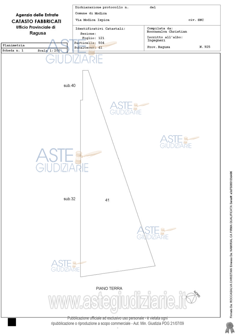 Vendita all'asta Senza incanto, con gara telematica sincrona mista - LOTTO 6: Locale adibito ad attività sportive, situato in Via Modica-Ispica snc, al piano terra, identificato al N.C.E.U. al foglio 121, particella 504, subalterno 44 (ex sub 22), categoria D/6, con una superficie complessiva di 255,30 mq. Annesso locale deposito di circa 71,85 mq lordi. Le aree di pertinenza sono censite con i subalterni 38 e 40 (categoria F/1). Prezzo base € 475.000,00 (offerta minima € 475.000,00). Data vendita 05/02/2026 ore 18:00. Professionista delegato alla vendita Dott. Graziana Baglieri. Custode Giudiziario Dott. Graziana Baglieri - Email "grazianabaglieri@gmail.com". Curatore Dott. Graziana Baglieri. Rif. Tribunale di Ragusa - Nuovo concordato preventivo n. 4/2021